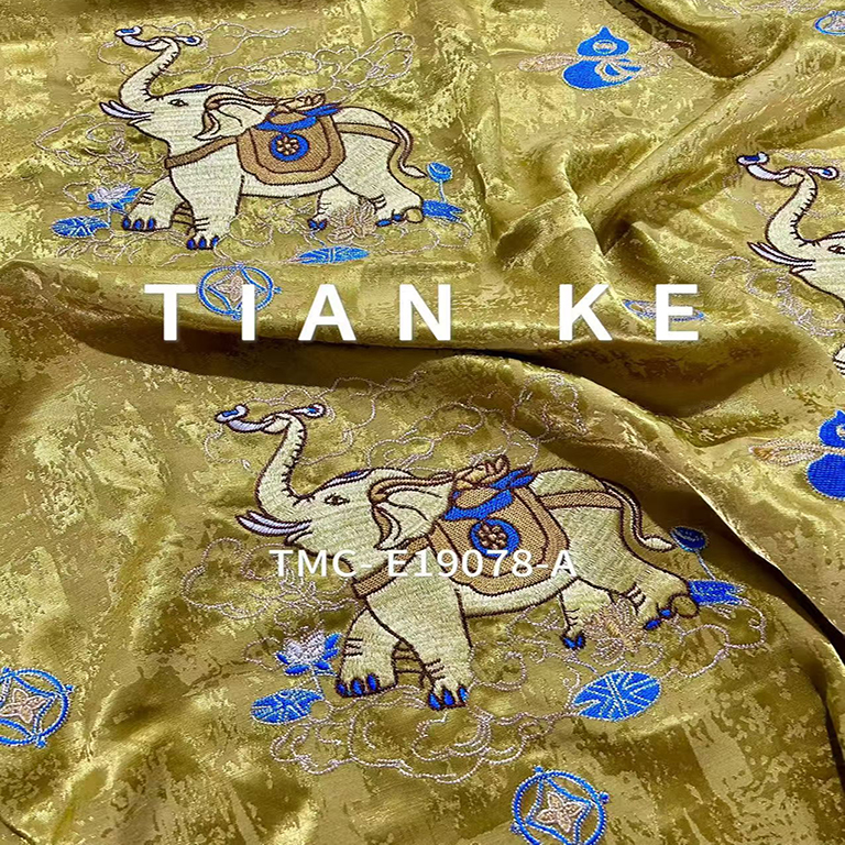 TMC-E19078-A (Gold Elephant Embroidery on Viscose Linen Jacquard Fabric)