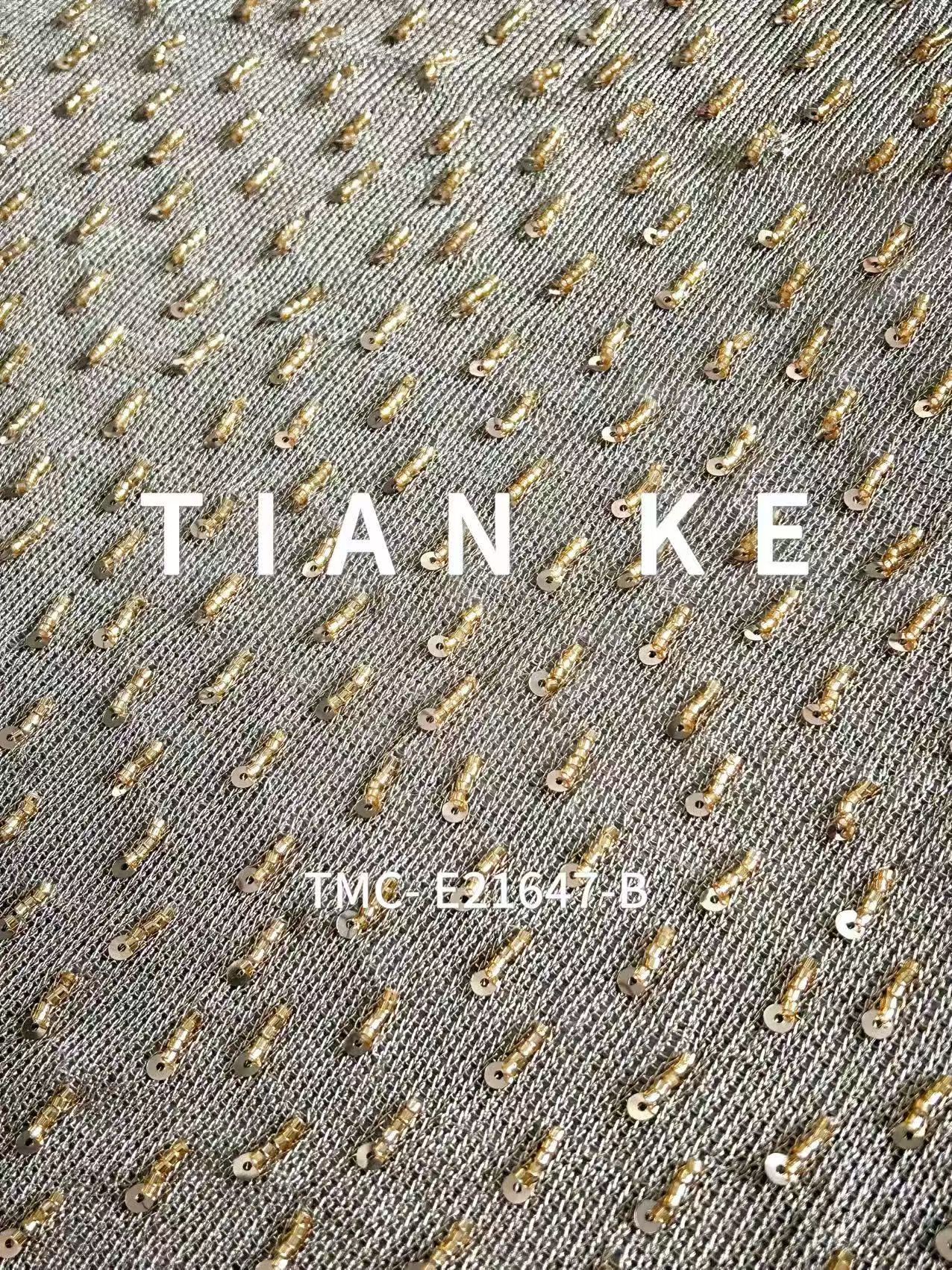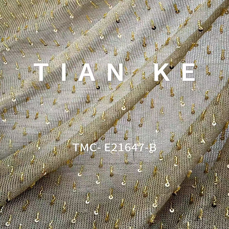 TMC-E21647-B (3D Fringes with Tube Beads & Sequins on Knitting Sp Fabric)