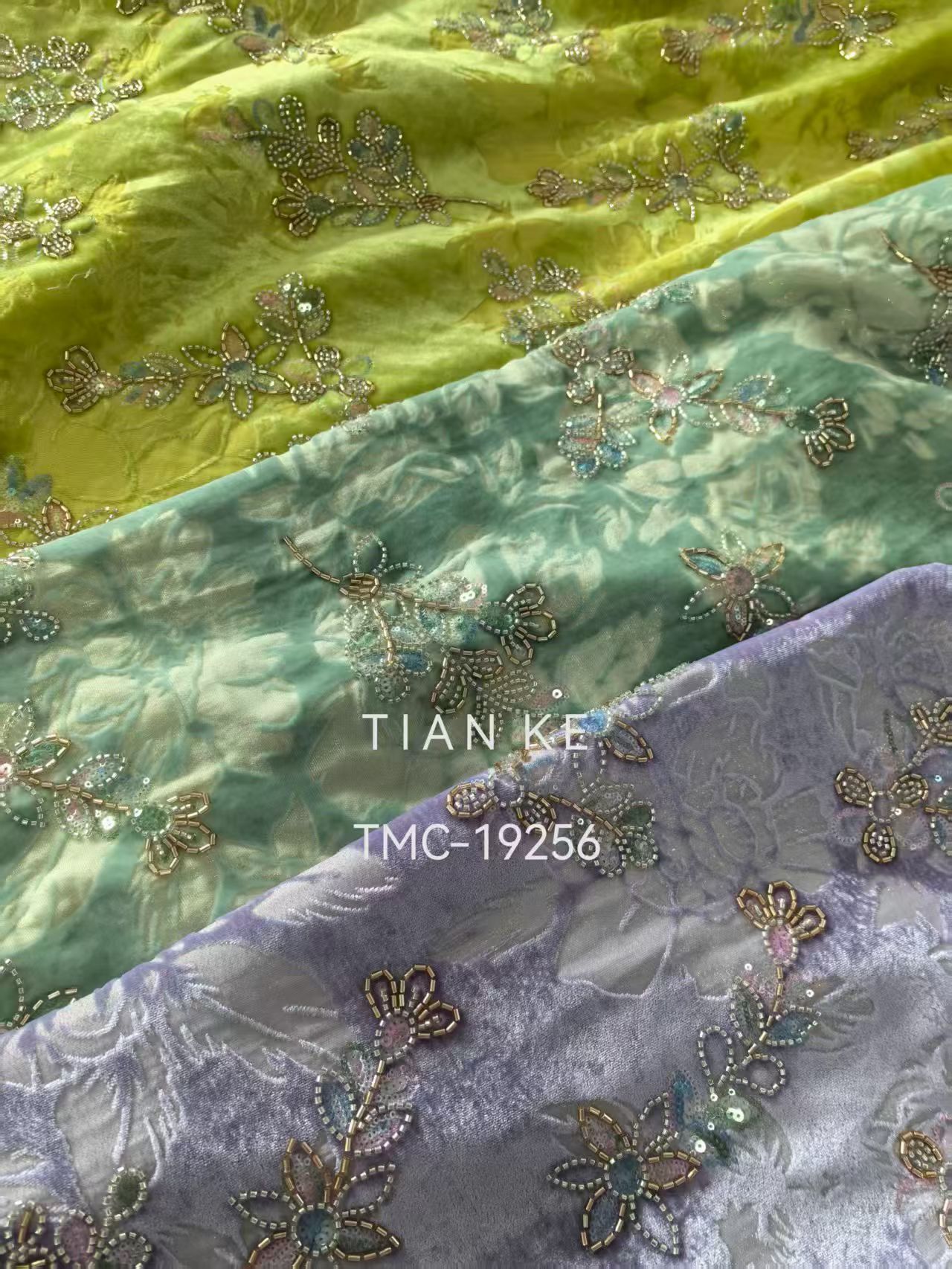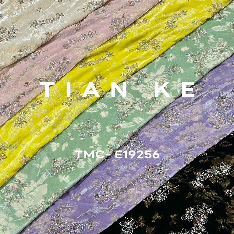 TMC-E19256 (Velvet Burn Out Embroidery with Beadings& Sequins)