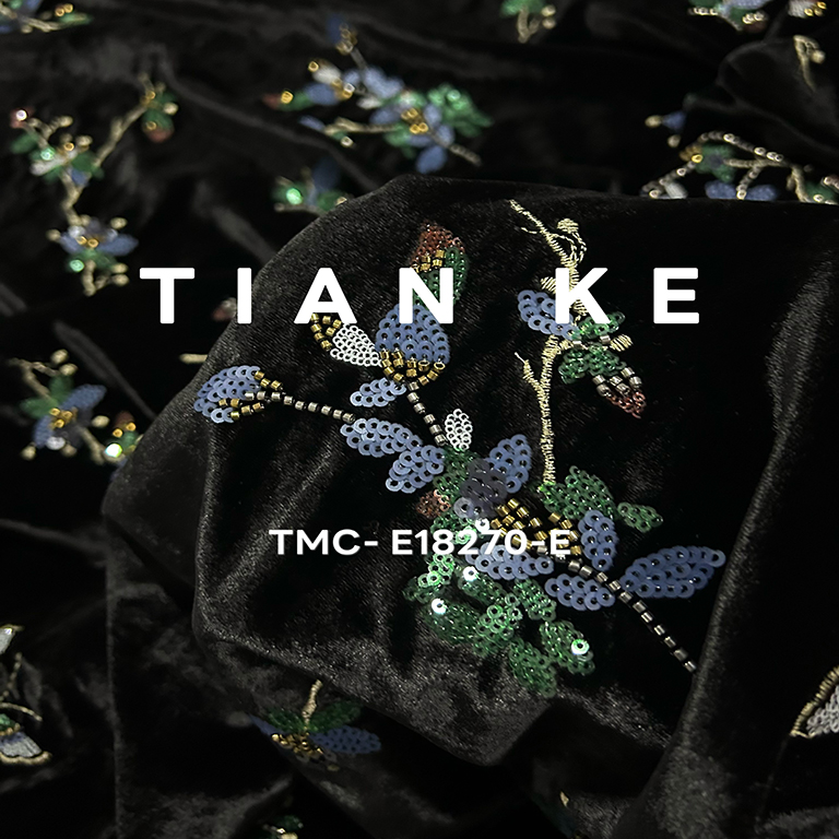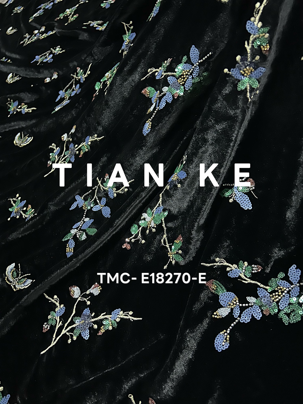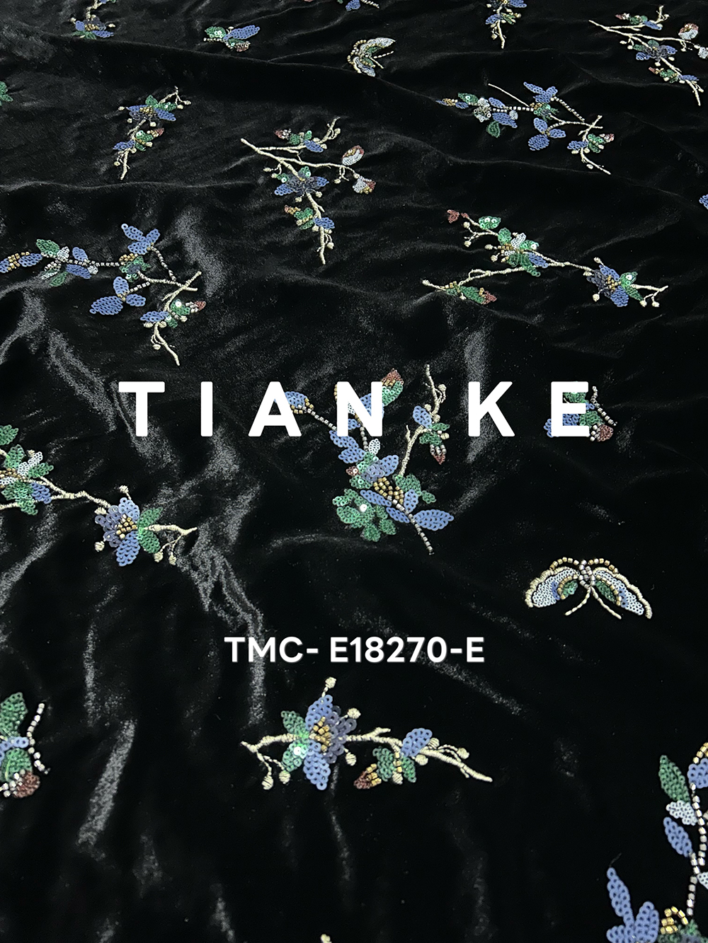 TMC-E18270-E (Multi Color Sequins With Tube Beads Flower EMB on Nylon Poly Sp Velvet)