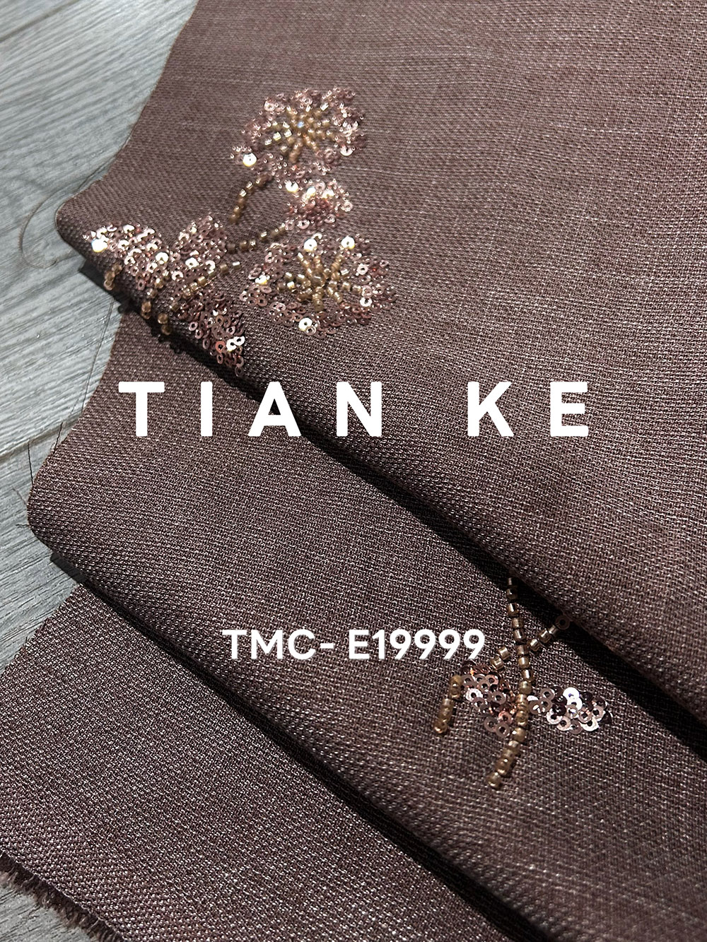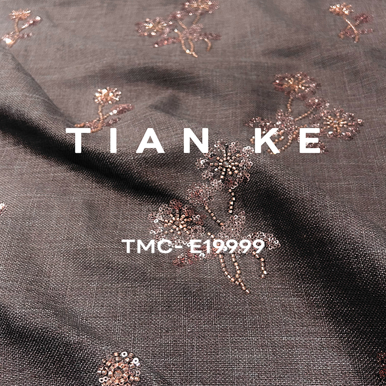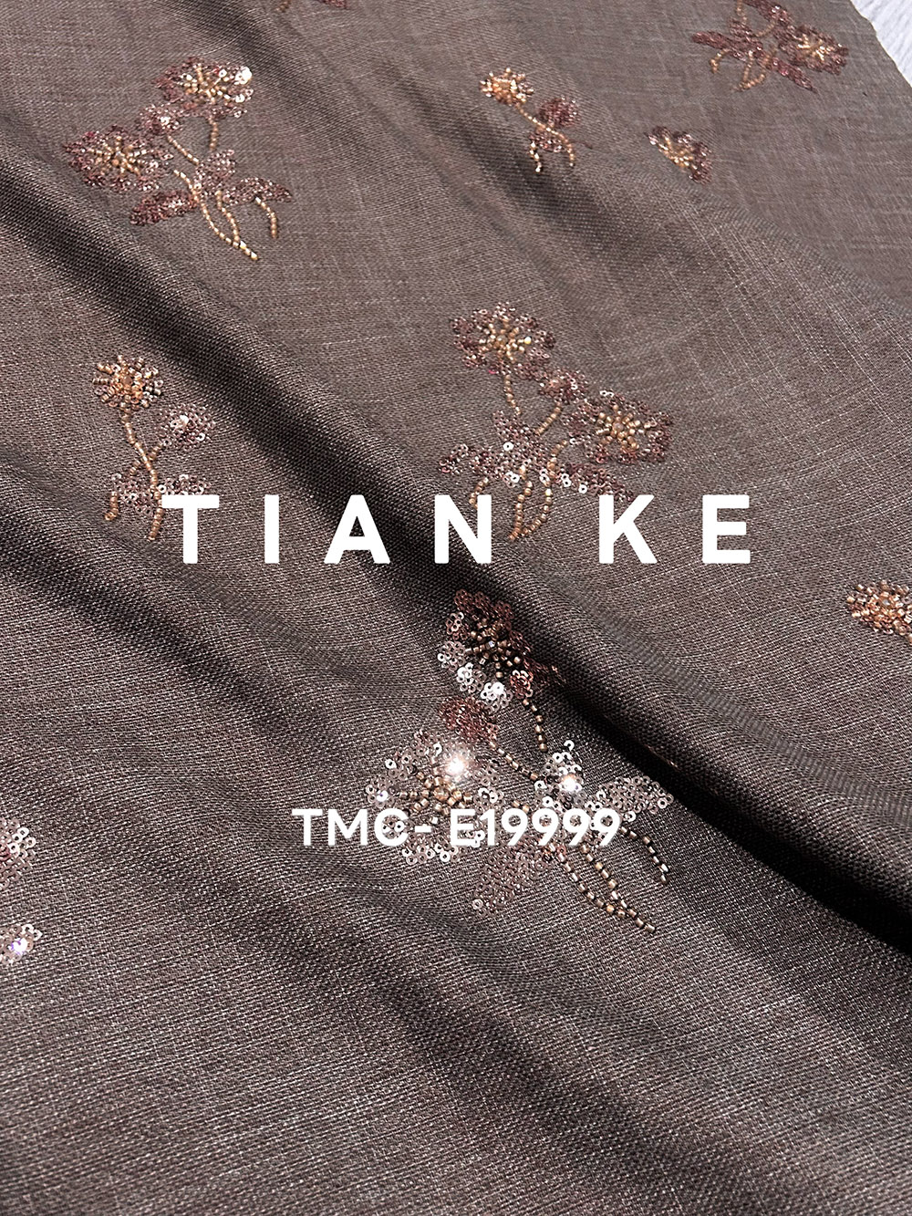 TMC-E19999 (Sequins & Beadings Flower on Woven Linen Tencel Blended Fabric)
