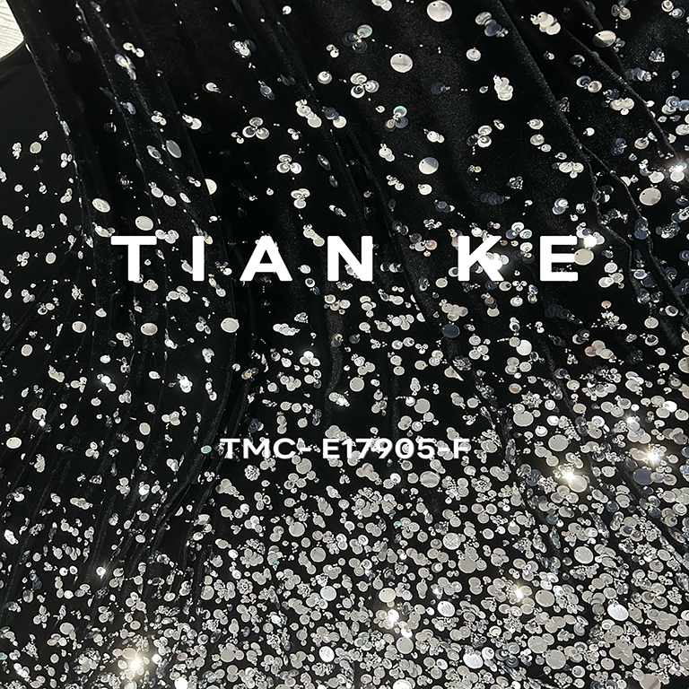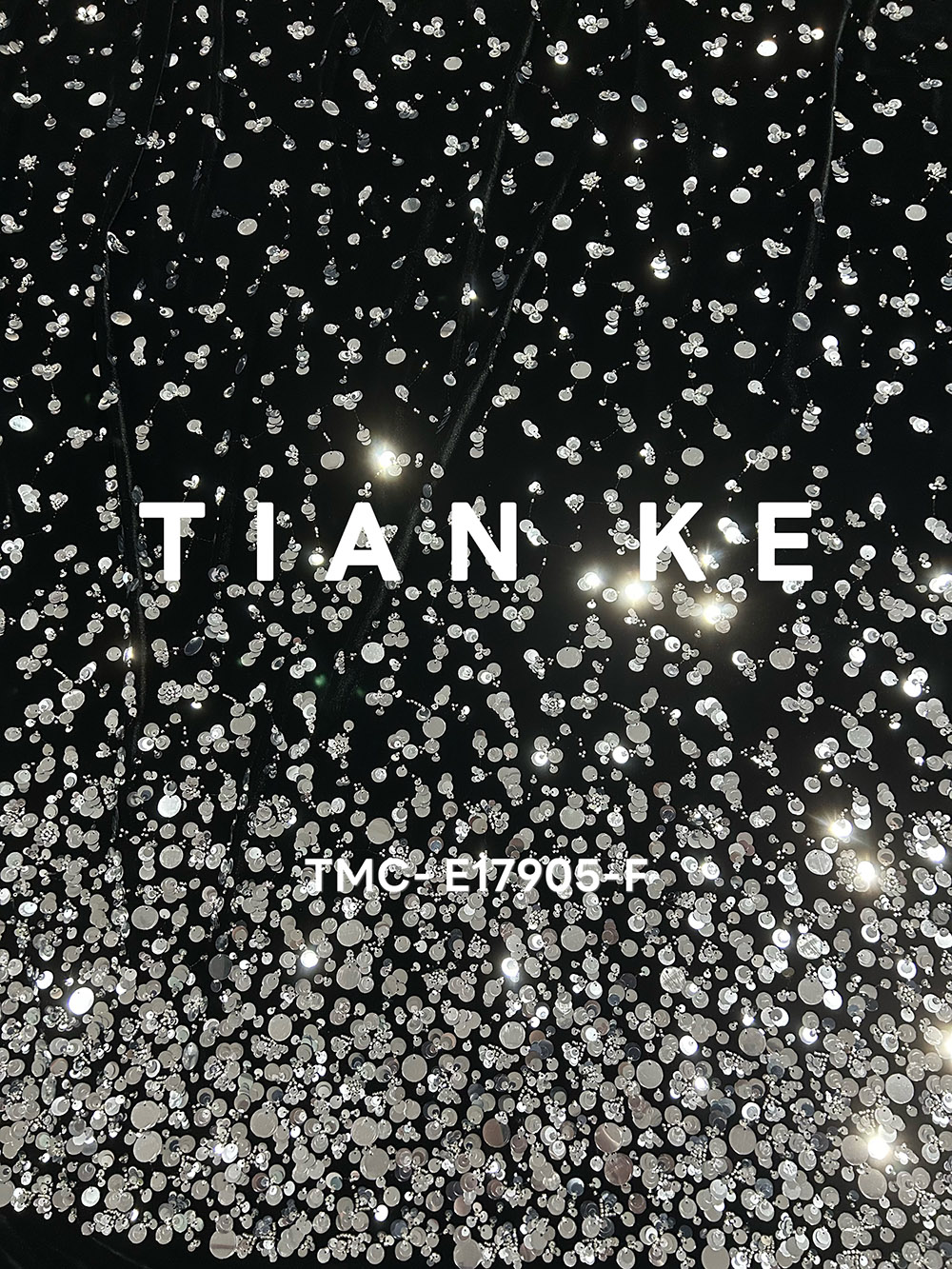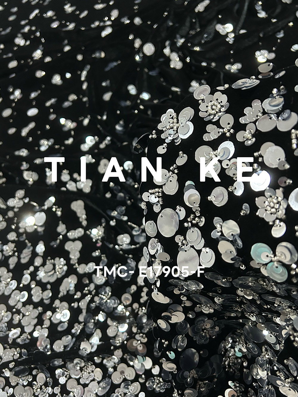 TMC-E17905-F (Sequins&Beading 3D Removable Emb on Poly Spandex Knitteing Velvet Fabric)