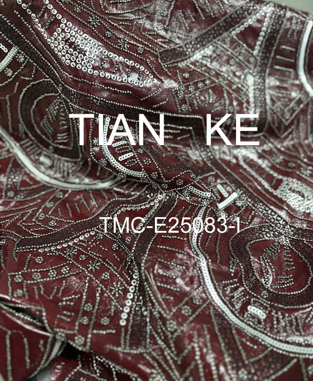 TMC-E25083-I (Upscale Beading & Sequins Embroidery on PU leather Fabric)