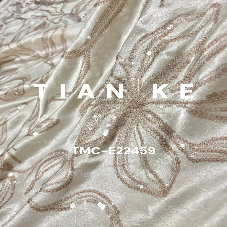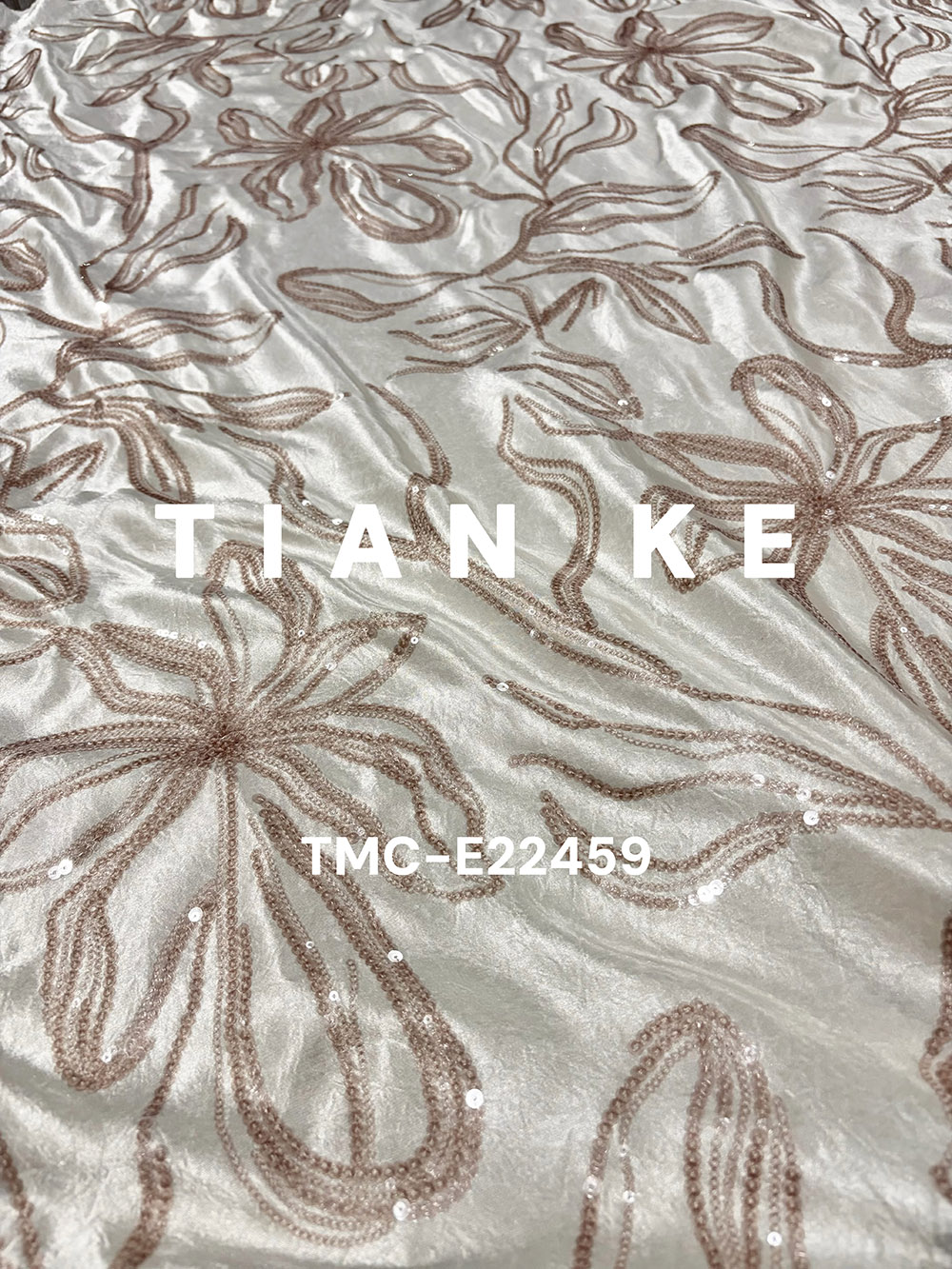 TMC-E22459 (Big Flowers Outlined With Clear Sequins on Popular Sellling ACE Satin Base Fabric)