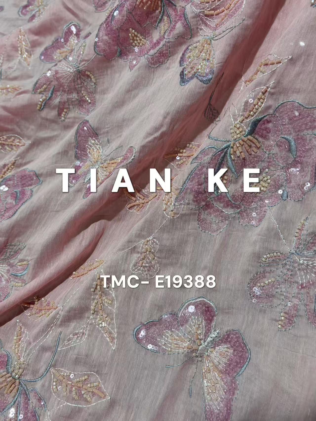 (TMC-E19388) Cute Butterflies Made With Sequins&Beadings on Tencel/Nylon/Linen Blended Fabric
