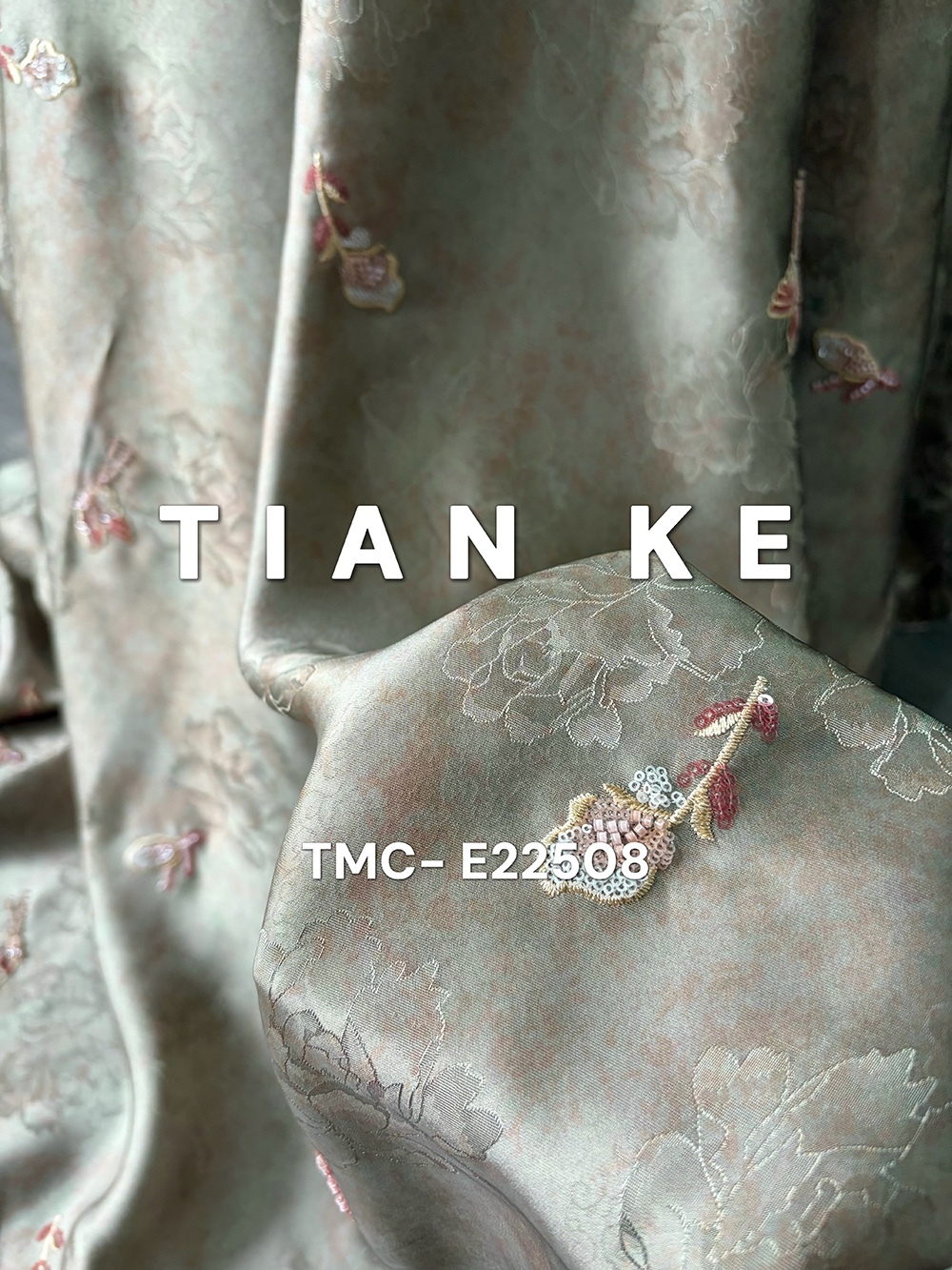 (TMC-E22508)Small Flower Decorated with Sequins & Beading On Viscose Printed Fabric