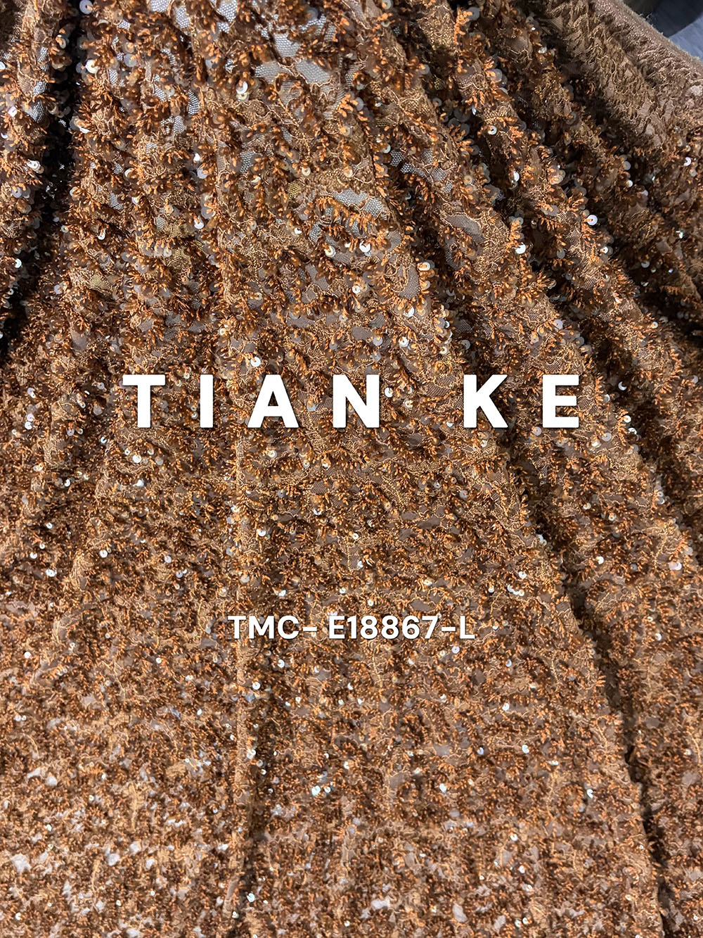 (TMC-E18867-L) Different Size Over labpped Stand Sequins Emb On Chenille Lace Groun