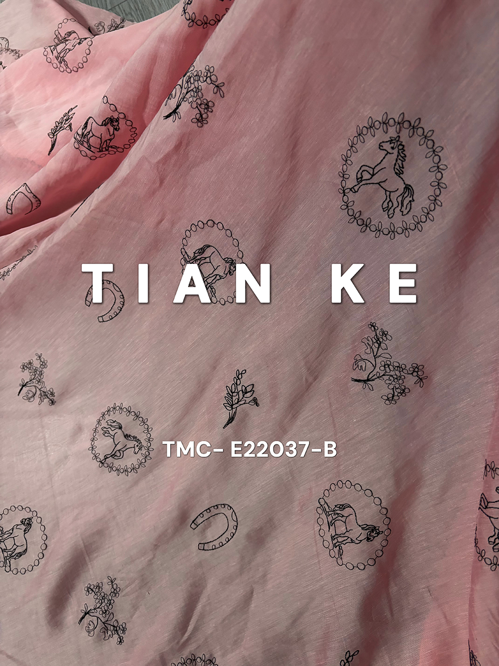 (TMC-E22037-B) Horses Trees Flowers with Single Simple Stitches On Nylon Tencel Fabric