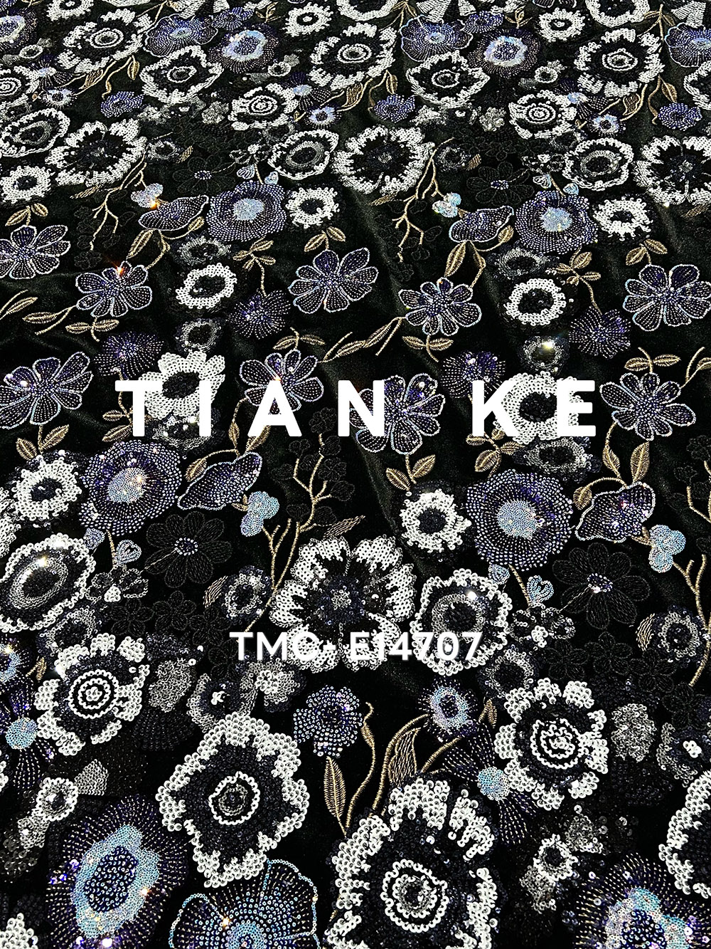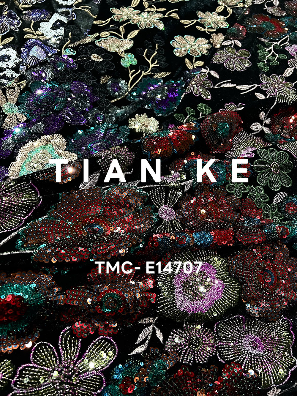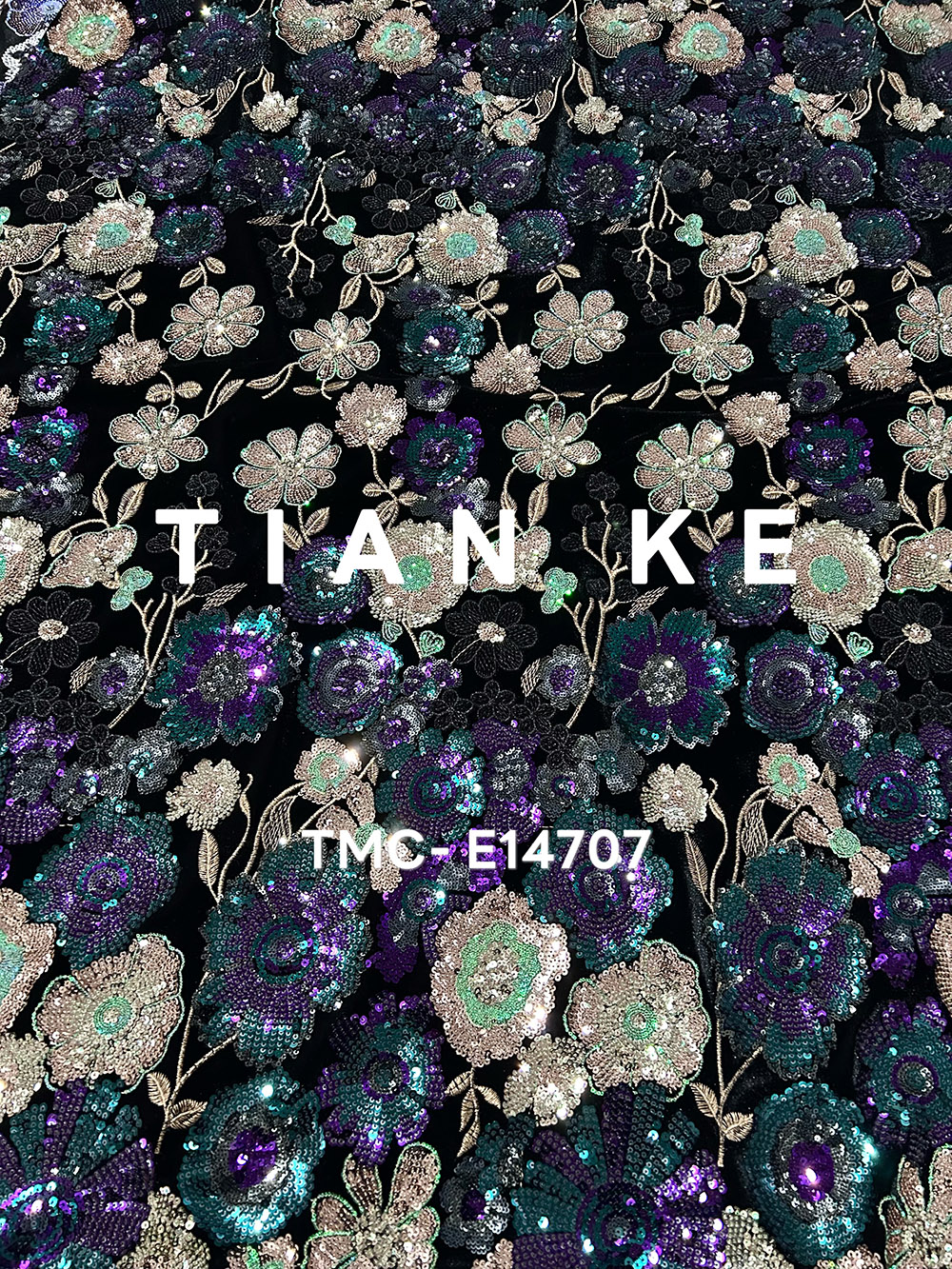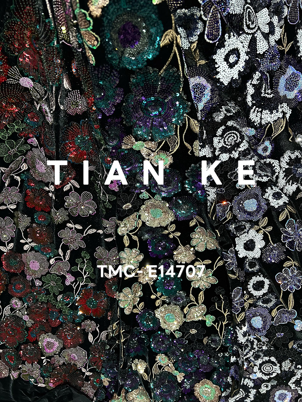 (TMC-E14707) Heavy Sequins Flower Of Multi Color Embroidered On Black Kitting Velvet Fabric
