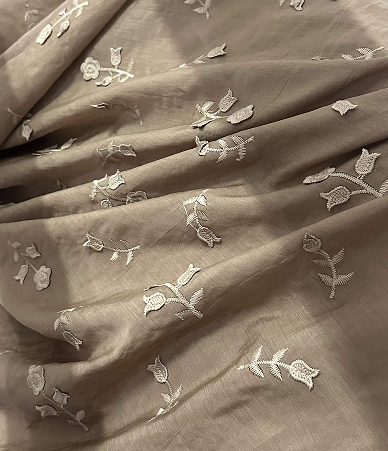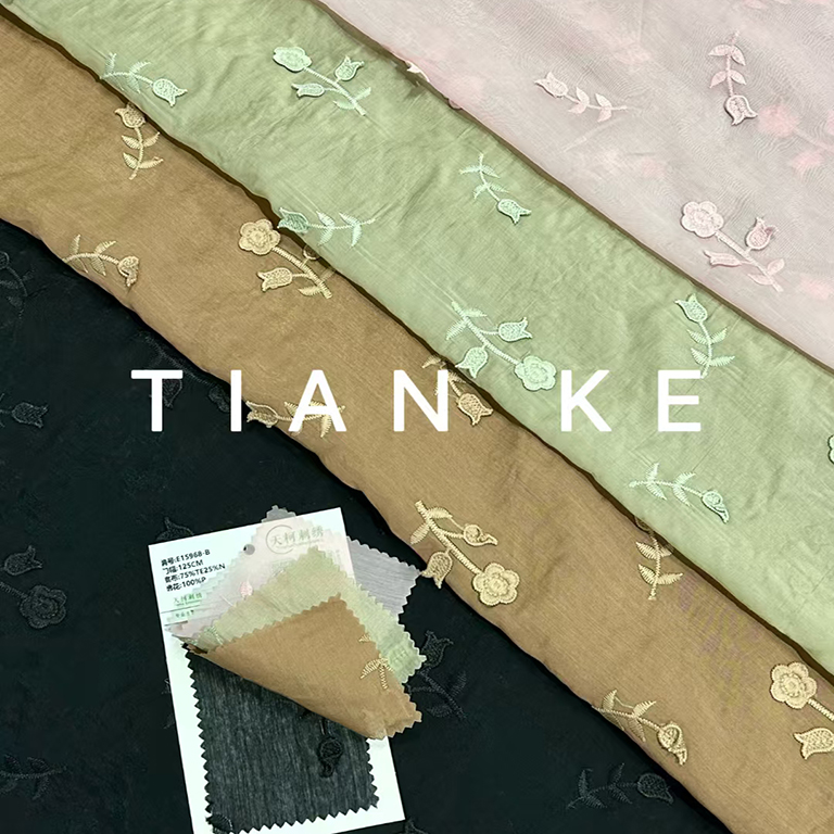 (TMC-E15968-B) 3D Flower All Over Embroidery On Tencel Nylon Blended Fabric