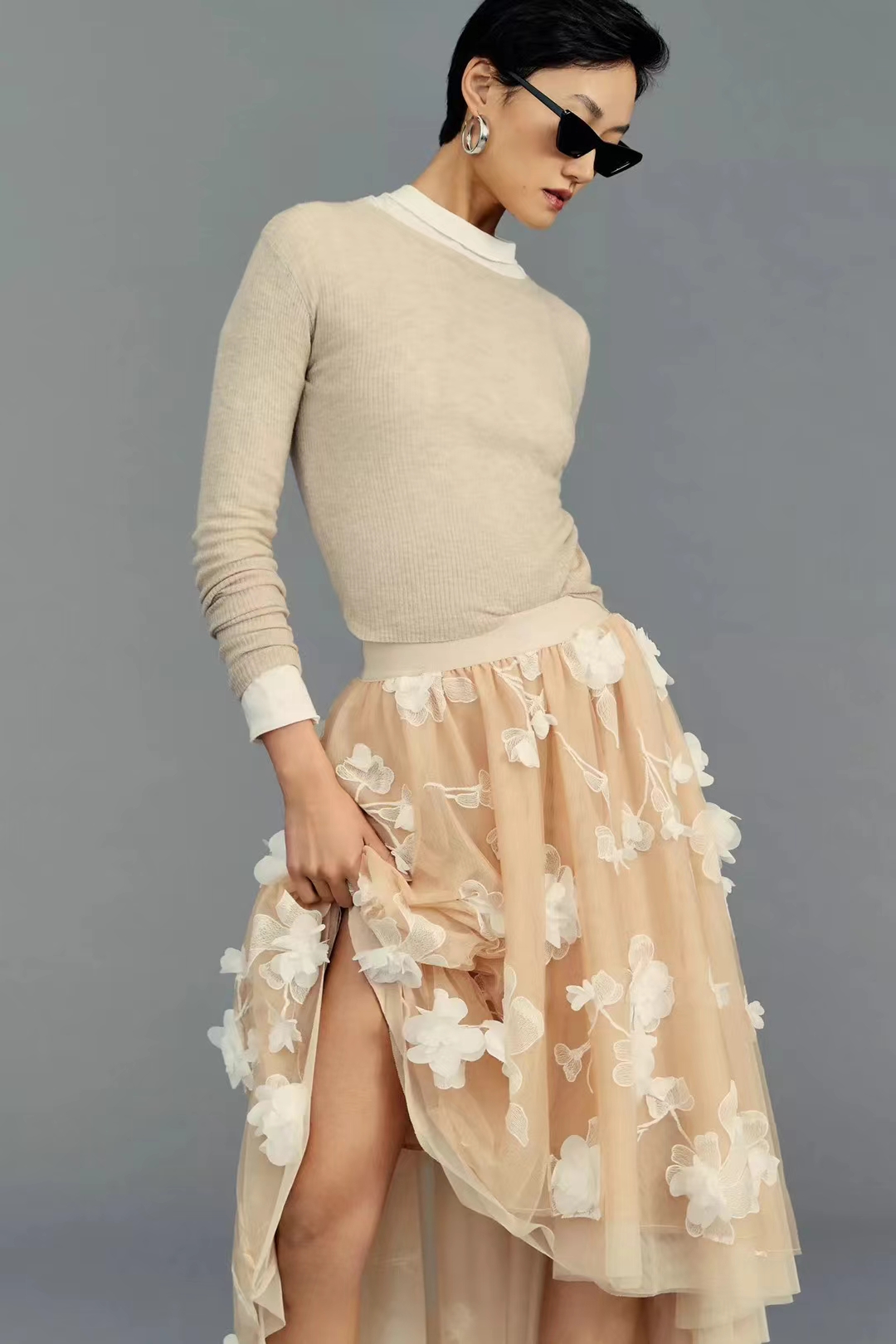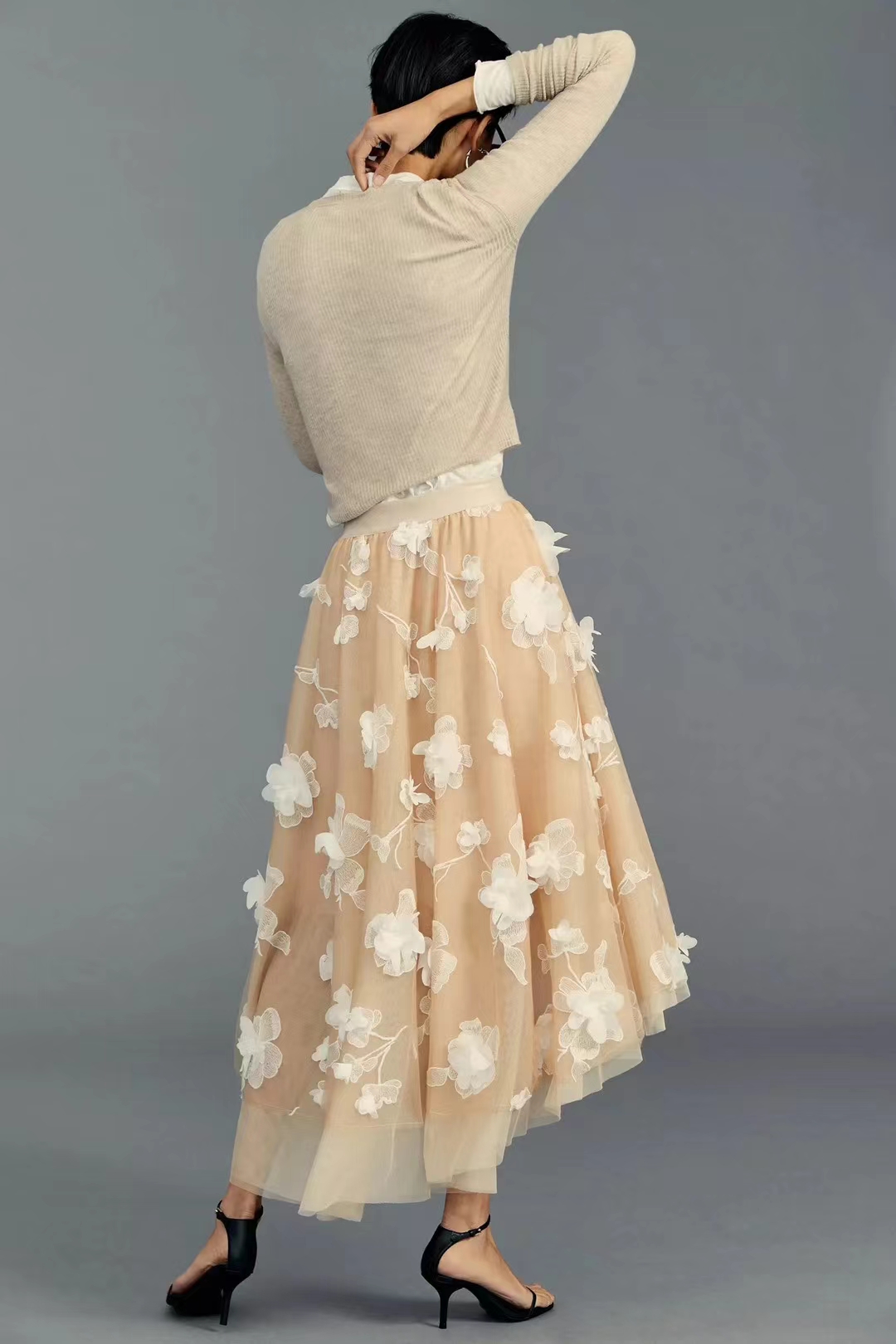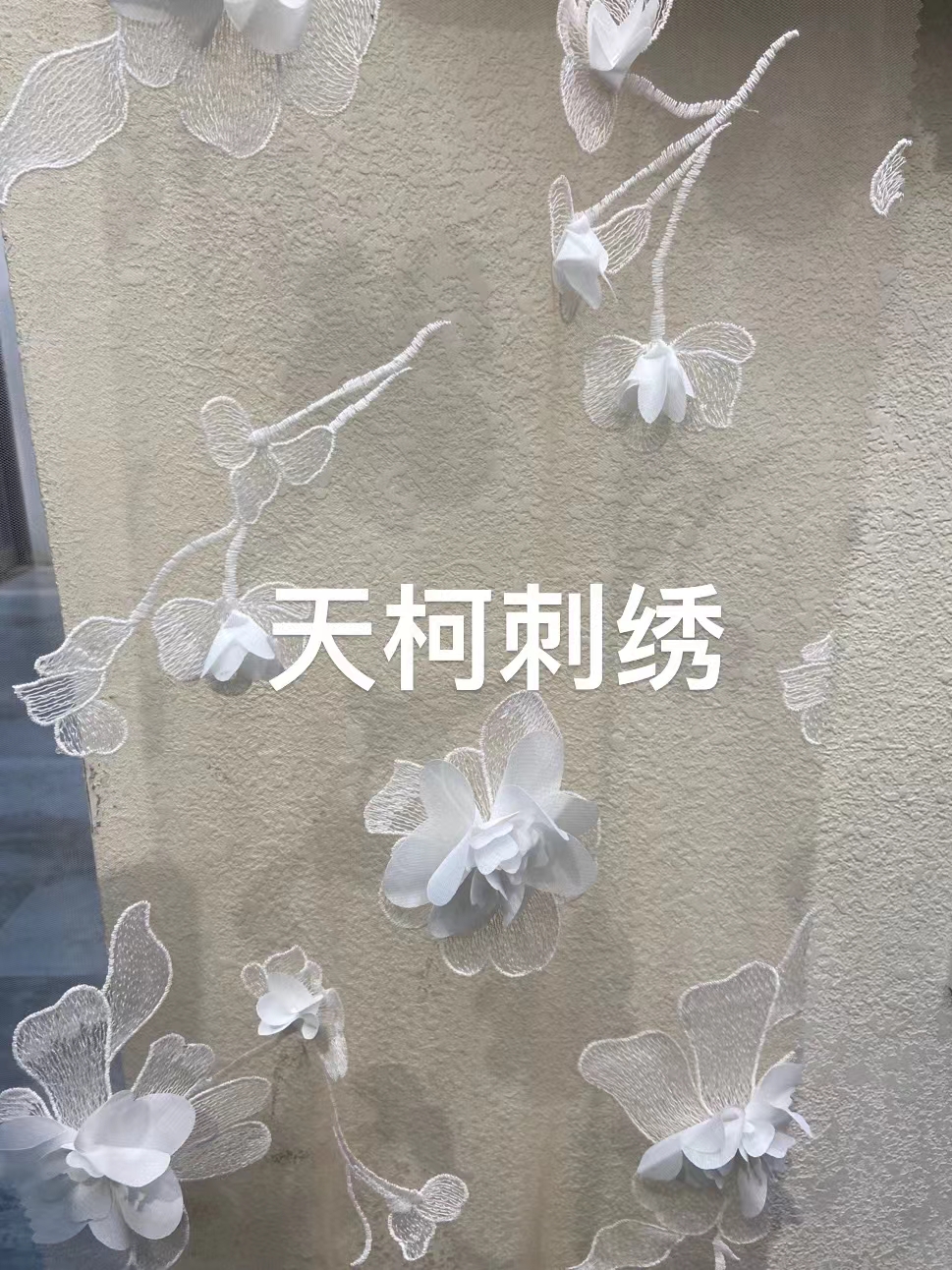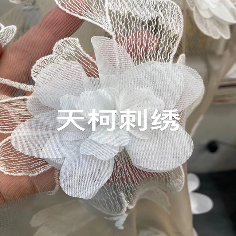 (TMC-E9616-D) Handwork 3D Flower Embroidered On Nylon Tulle Mesh Fabric