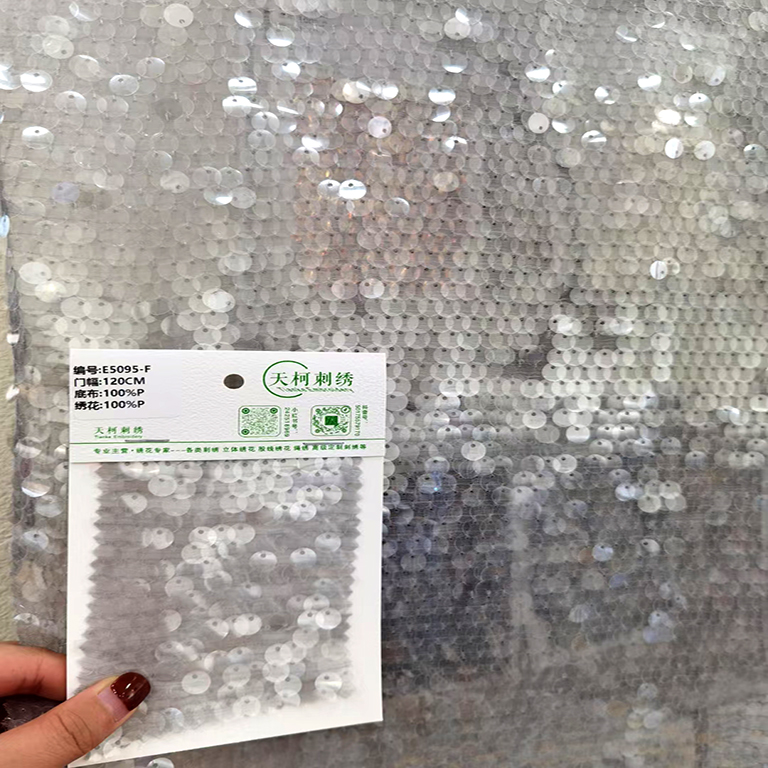 (TMC-E5095-F) 7mm Top Circled Transparent Sequins All Over Embroidered on Light Weight Chiffon Yoryo