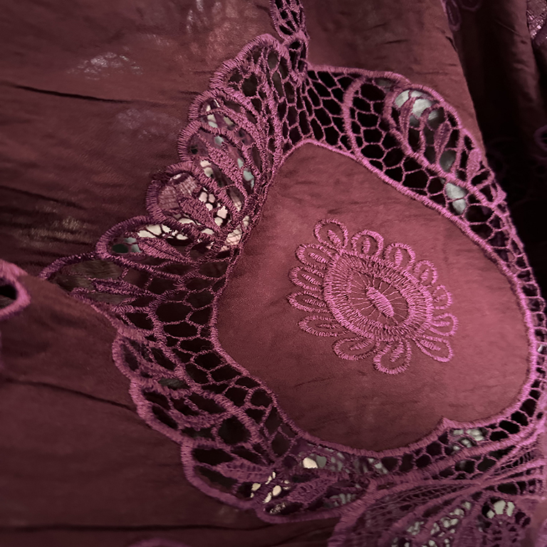 (TMC-E7096-B) Big Design Repeat with Laser Cut Technique Embroidered on 60s Rayon Crepe Fabric