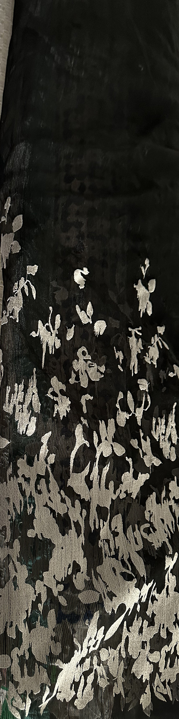 (TMC-E7395-A) Long Border Design Embroidered on 100%Polyester Organza with indistinct stripes