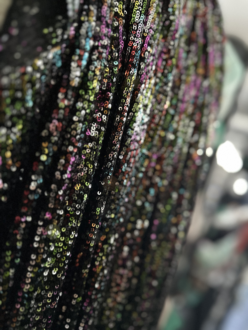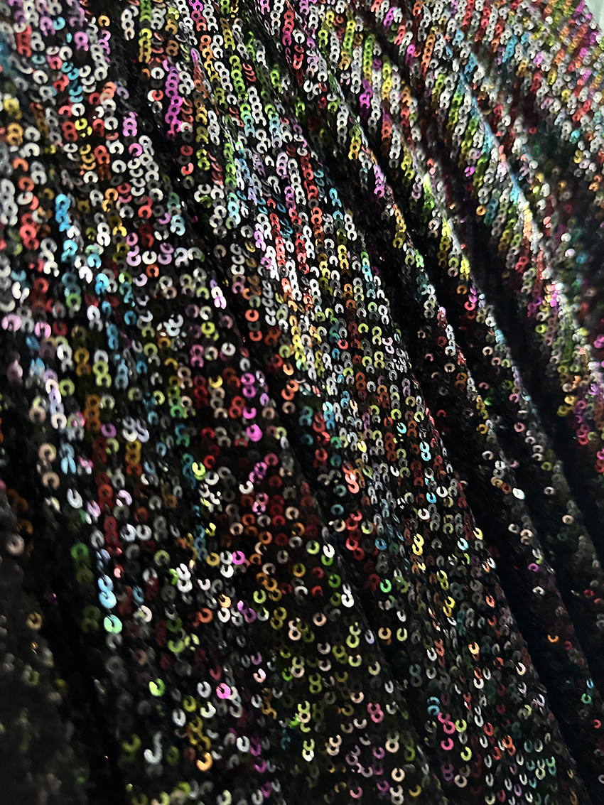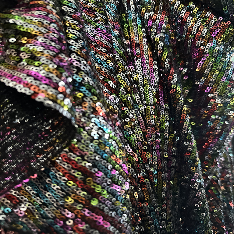 (TMC-E10637) Multi Color Sequins In Stripe Desgin Embroidered on Polyester/sp Tulle Mesh Fabric