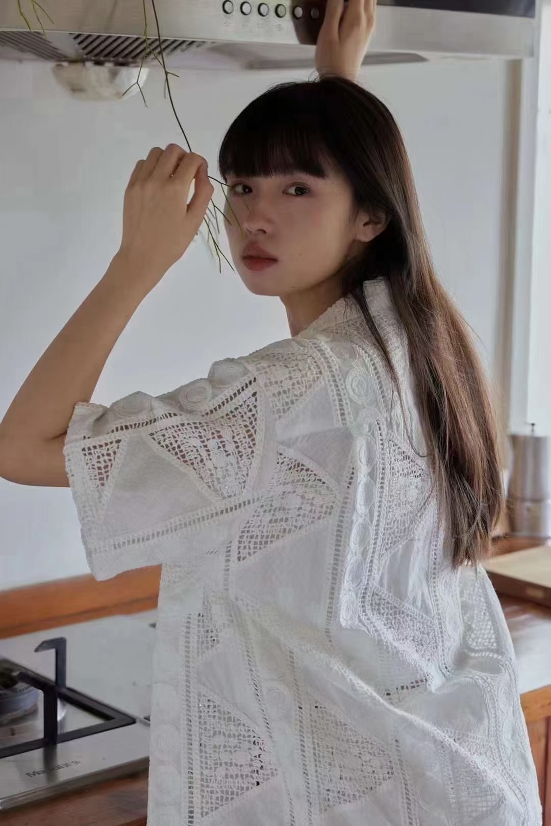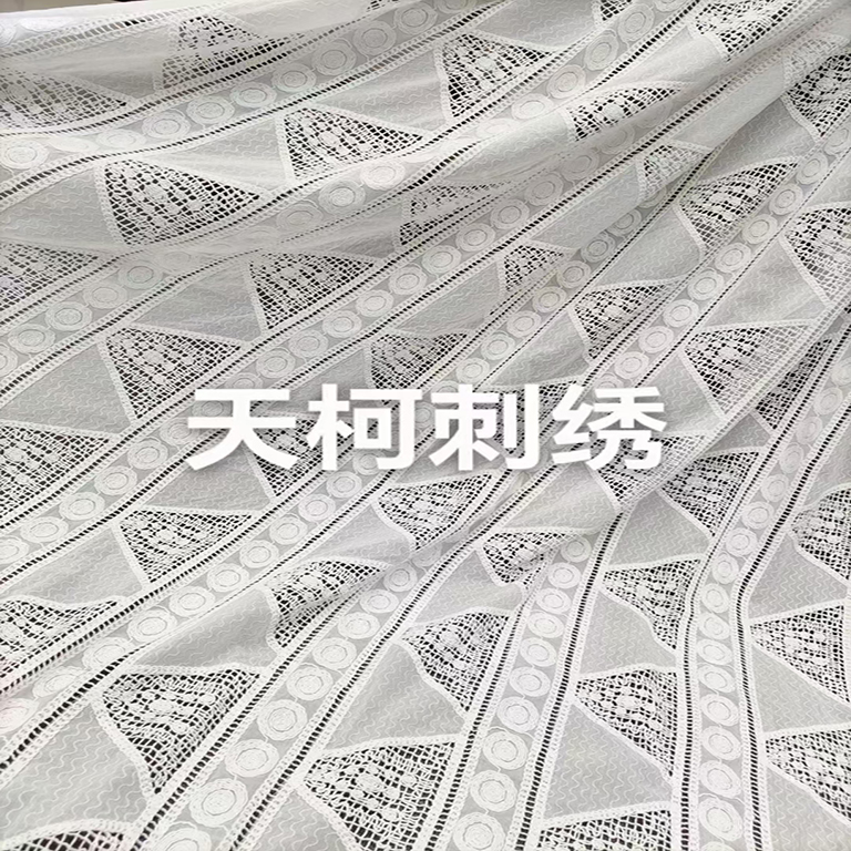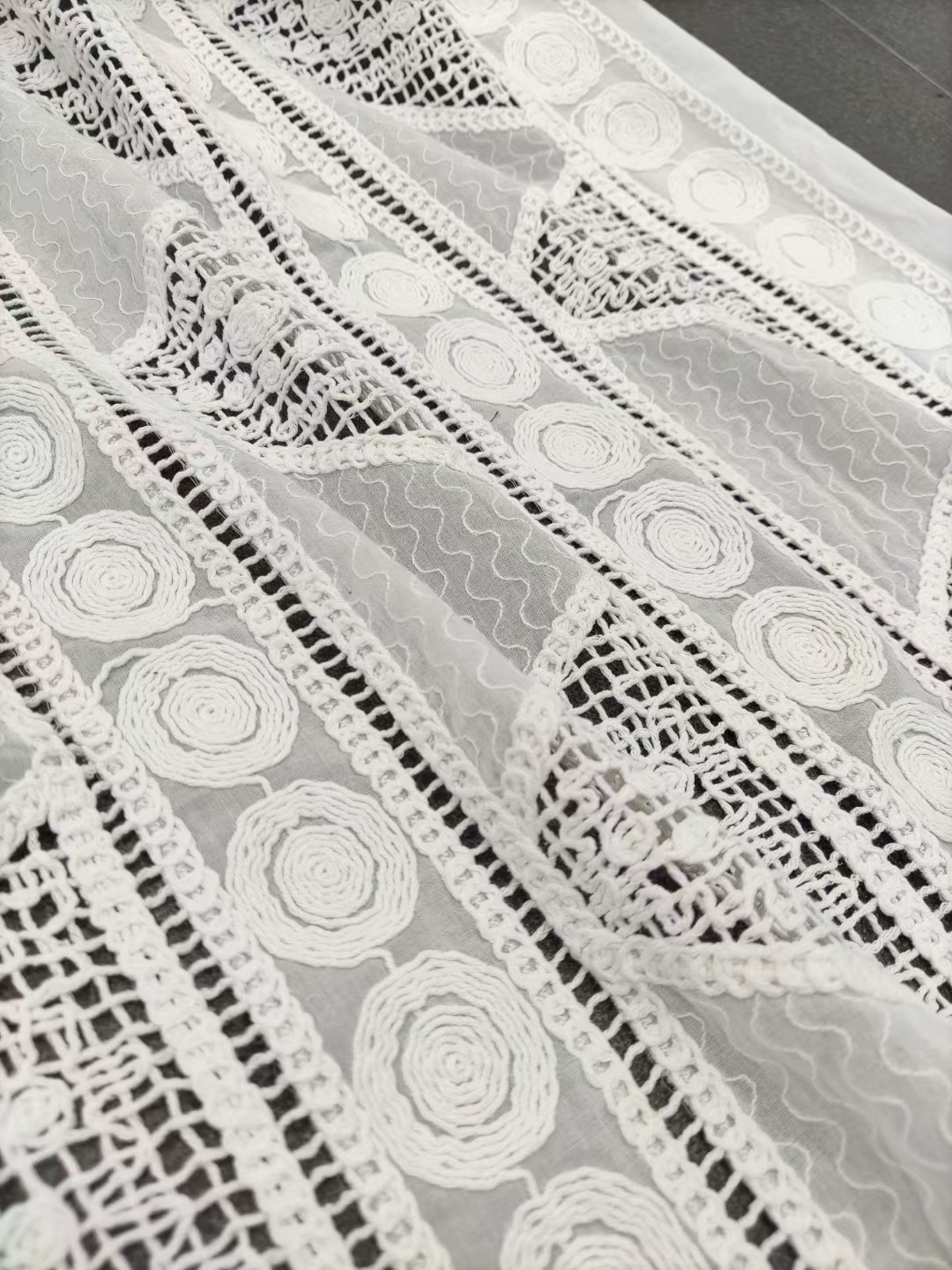 (TMC-E16341) Cotton Voile Base with Laser Cut Embroidery with Cotton Rope Thread