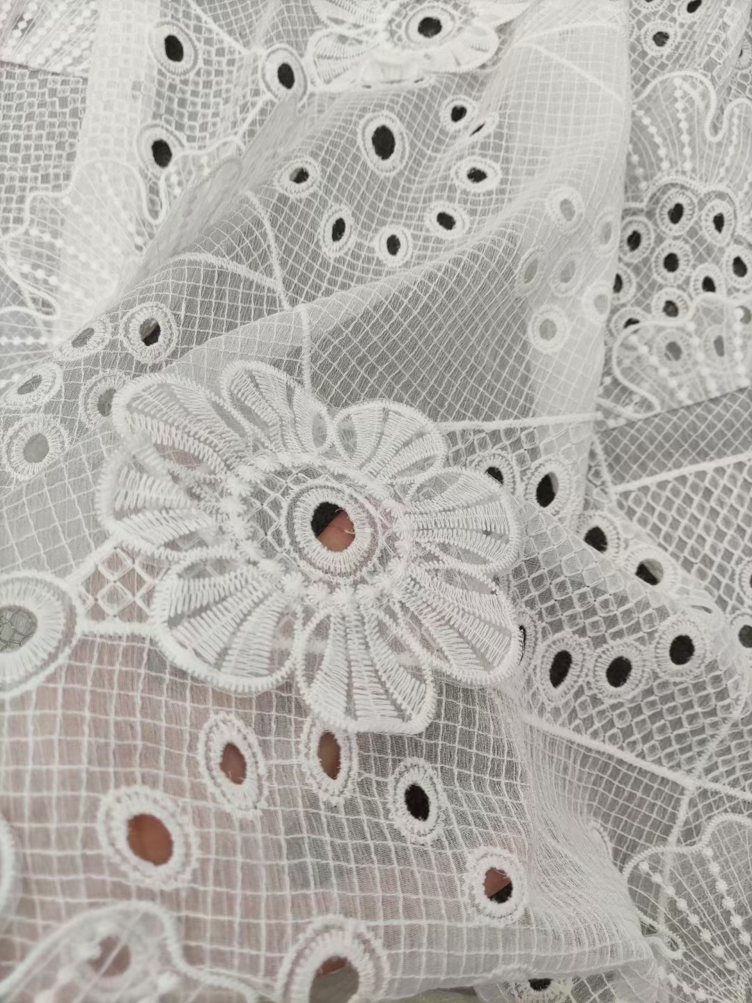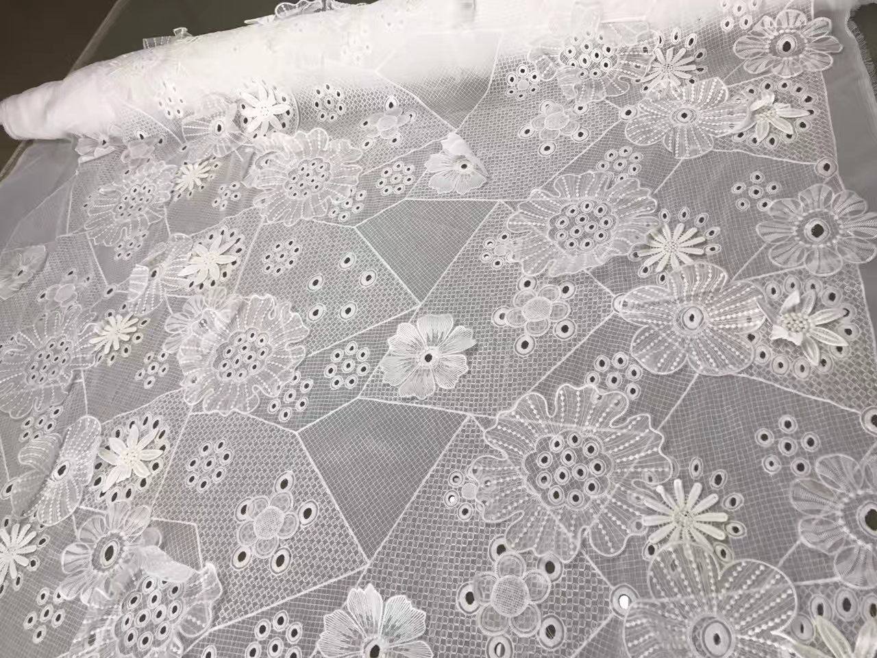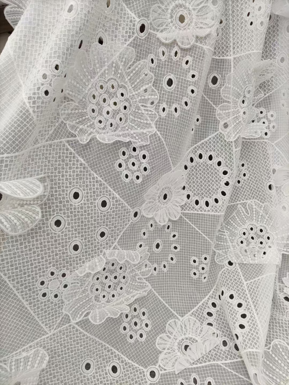 (TMC-E7576-D) Nylon Poly Organza With Eyelet Embroidery&Hand Cut work 3D Flowers Sewed byHand