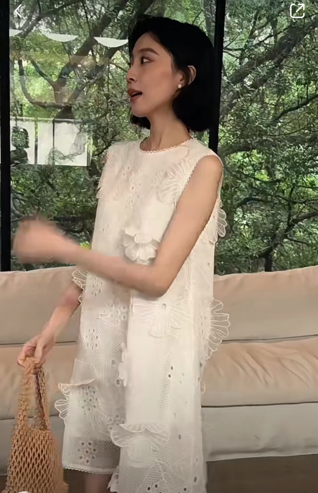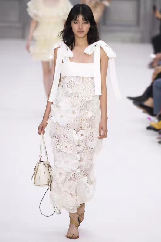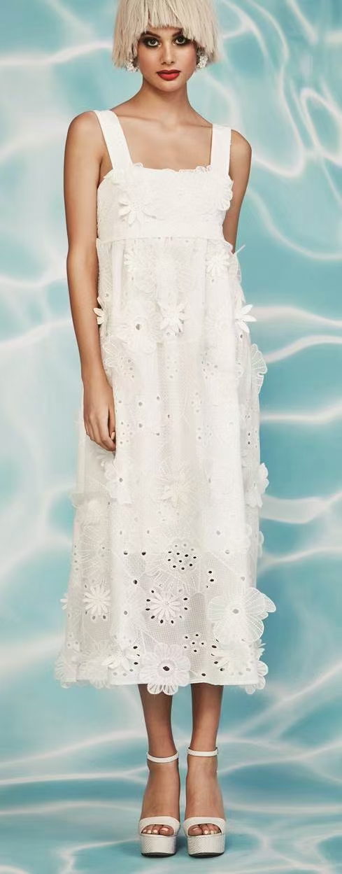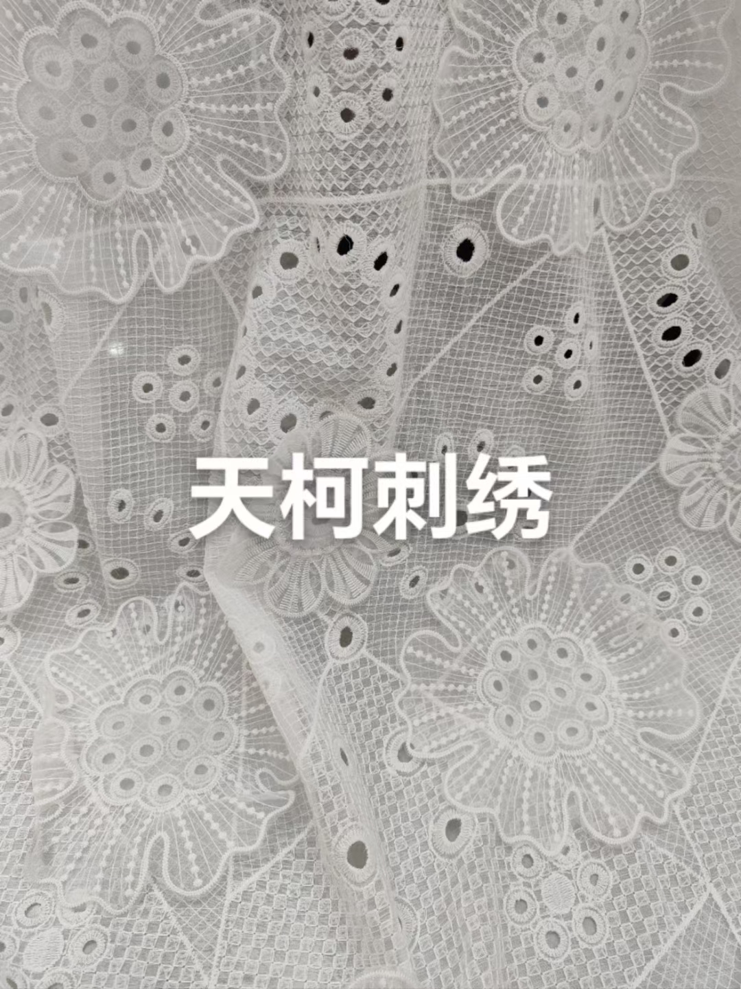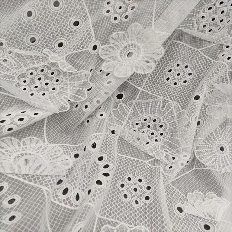 (TMC-E7576-D) Nylon Poly Organza With Eyelet Embroidery&Hand Cut work 3D Flowers Sewed byHand