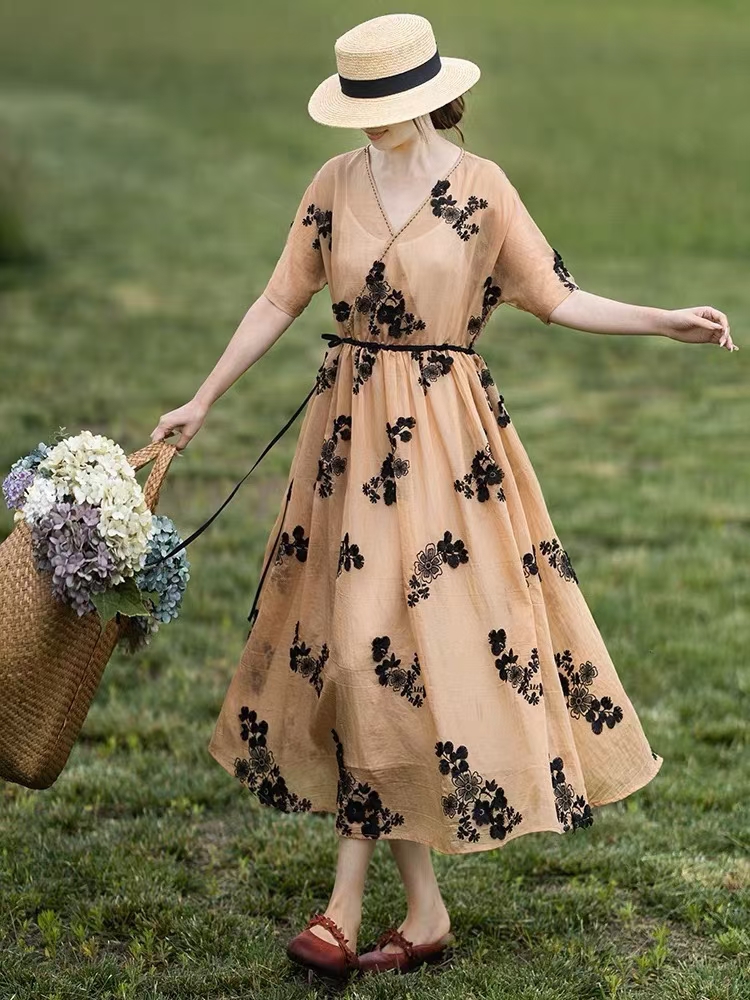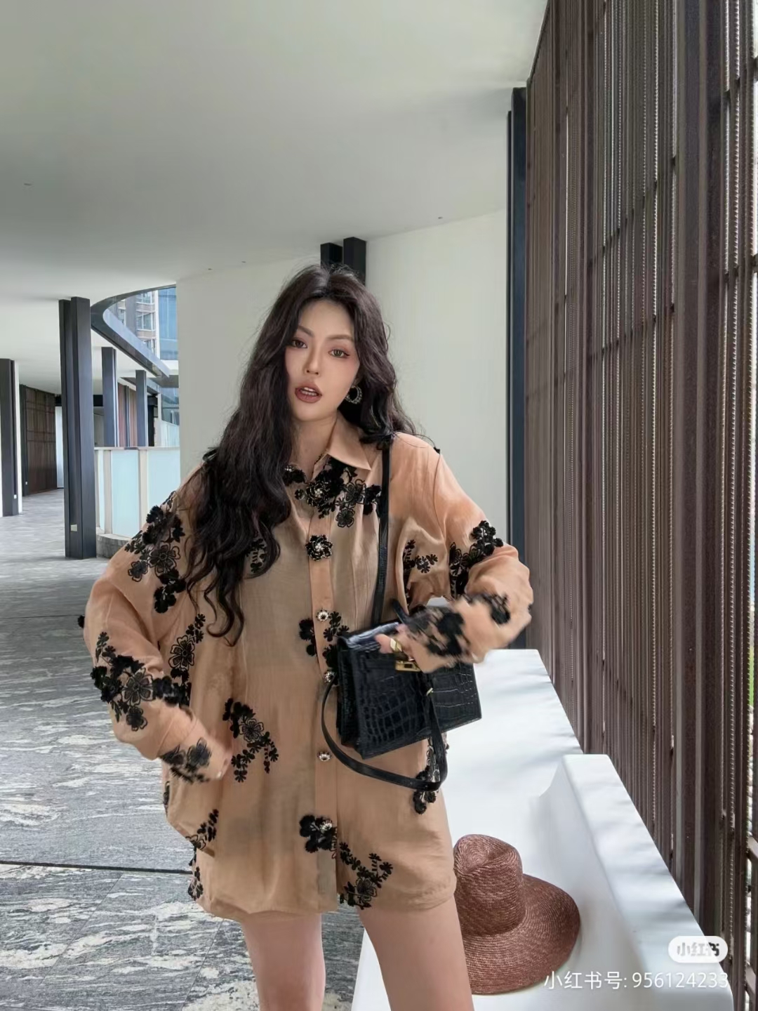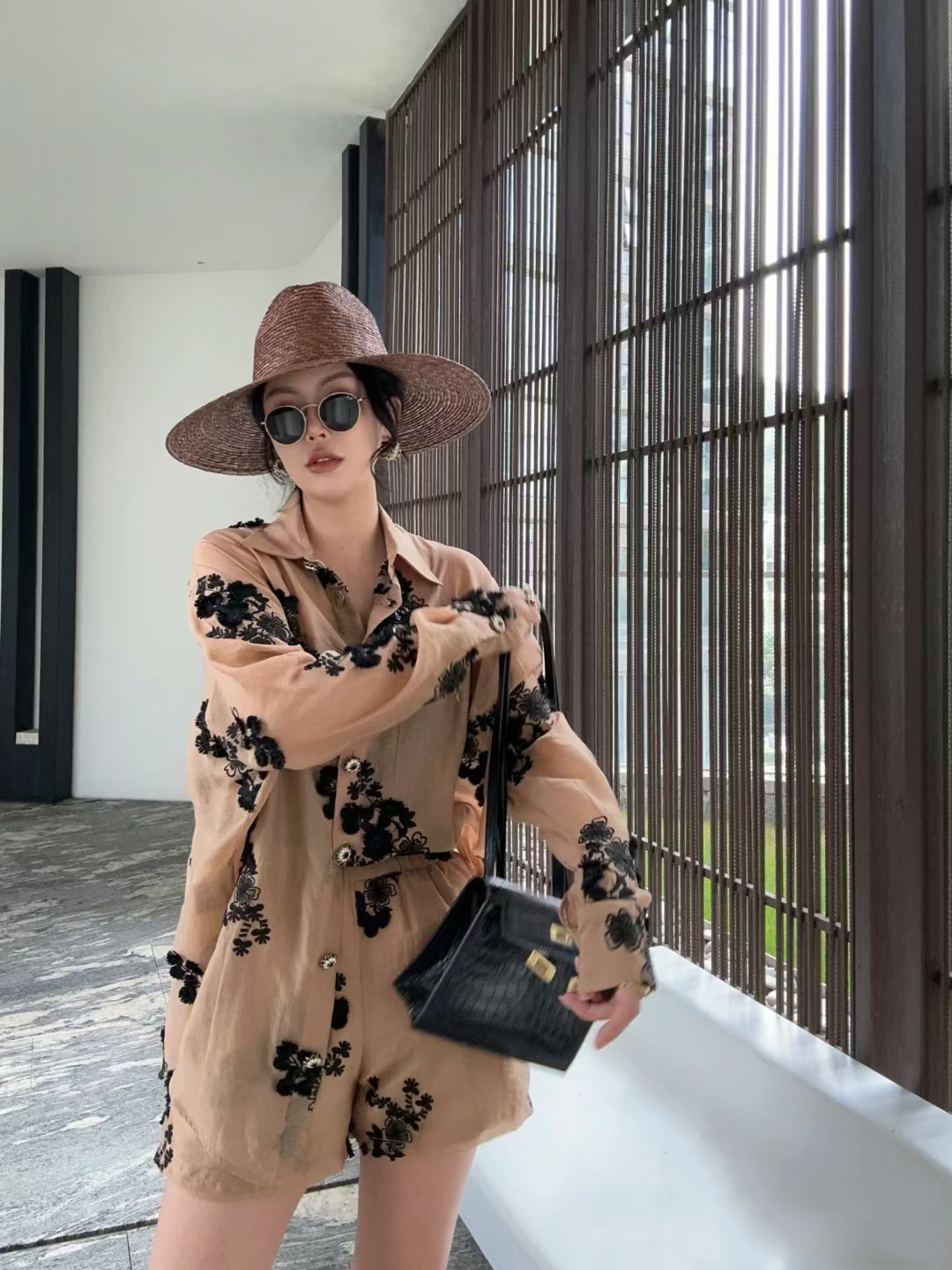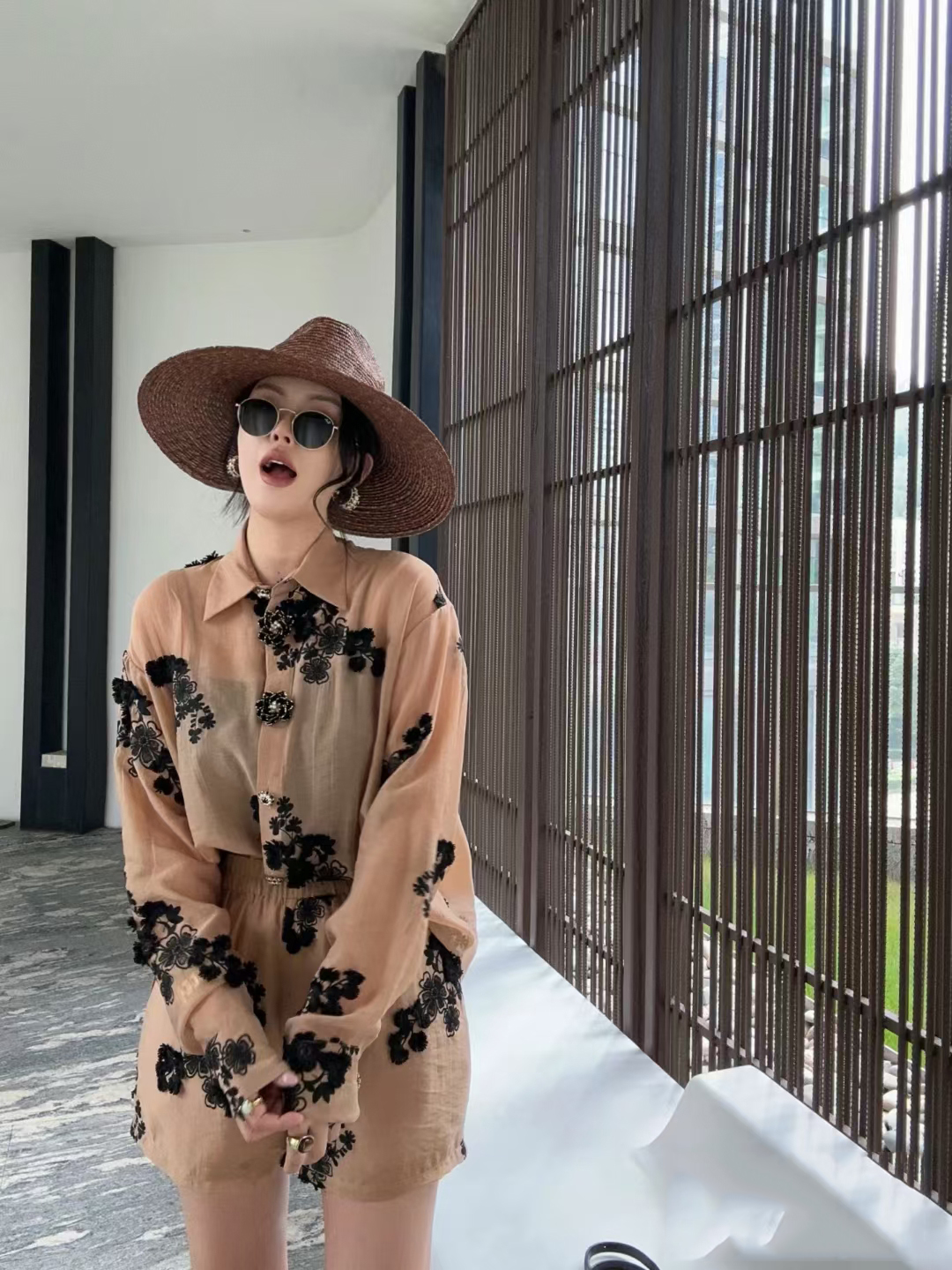(TMC-E20220-B) Light Weight Tencel Nylon Blend Fabric With 3D Flower Embroidery
