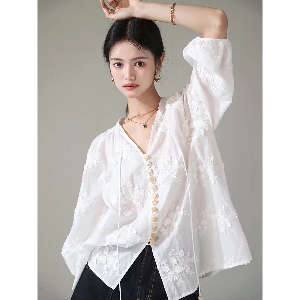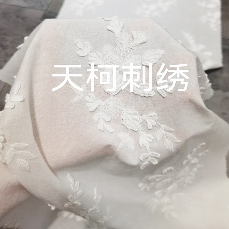 (TMC-E20849 ) 3D Flowers in Cotton Thread Embroidered On Cotton Fabric
