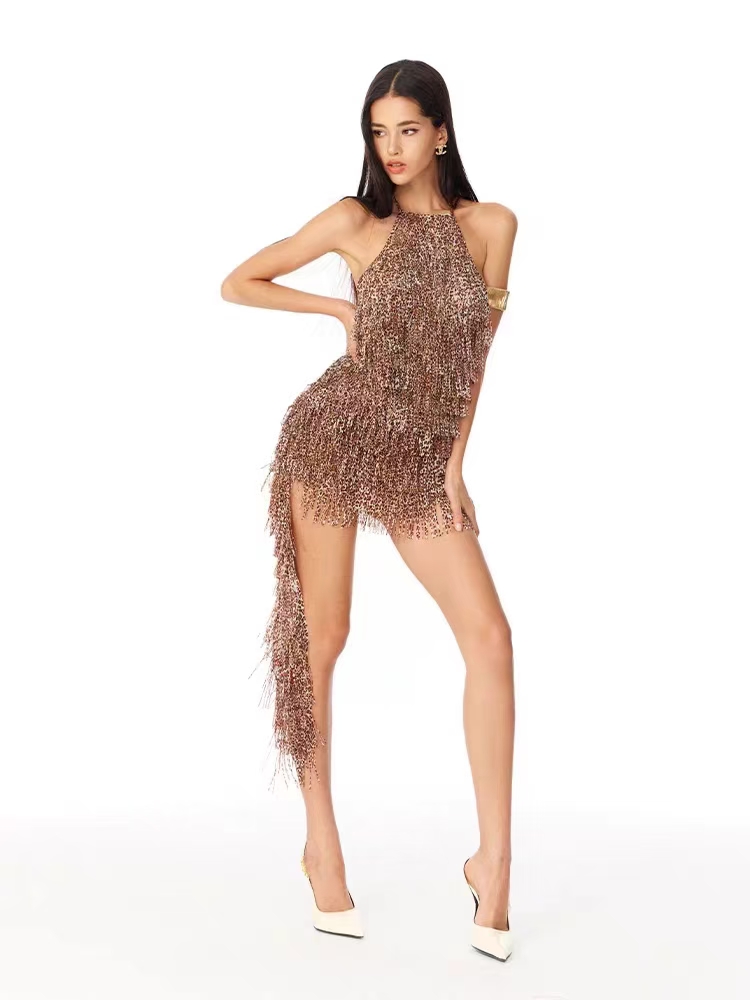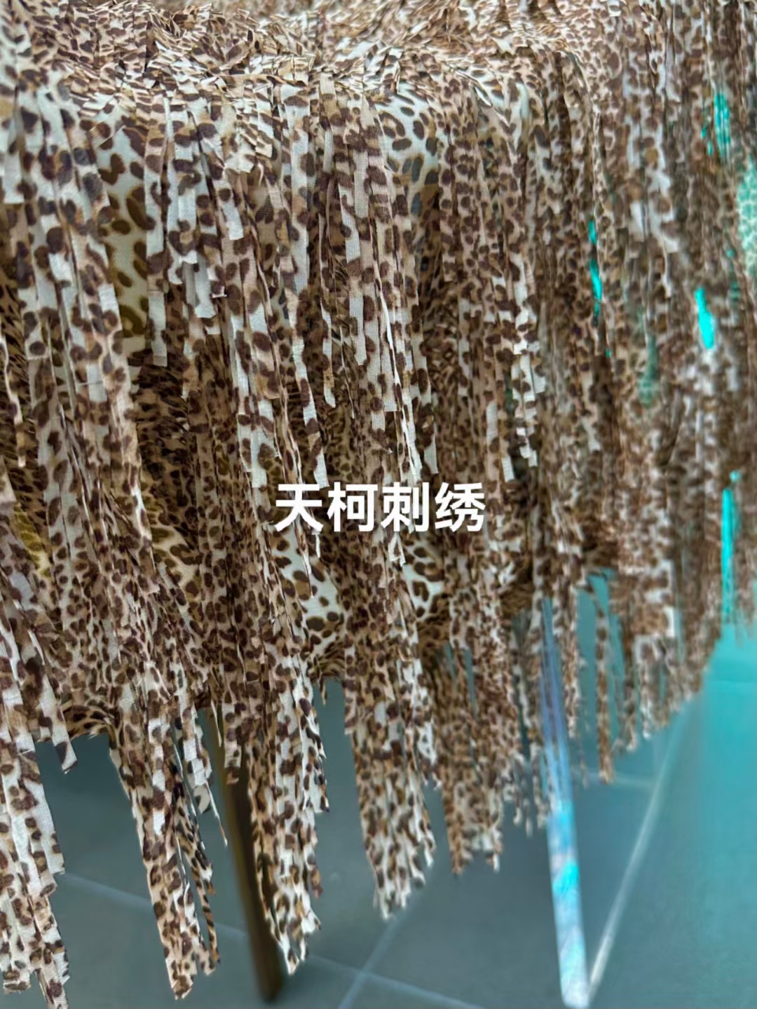 (TMC-E5564) 100%Polyester Chiffon Base Fabric Laser Cut into Fringes with Hand Work Sewing