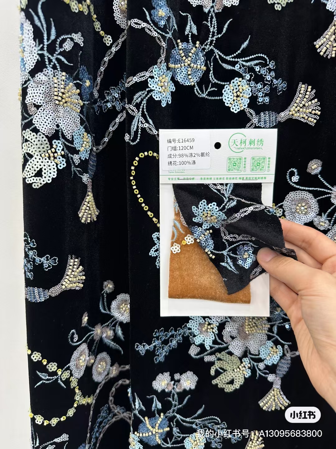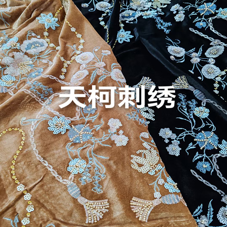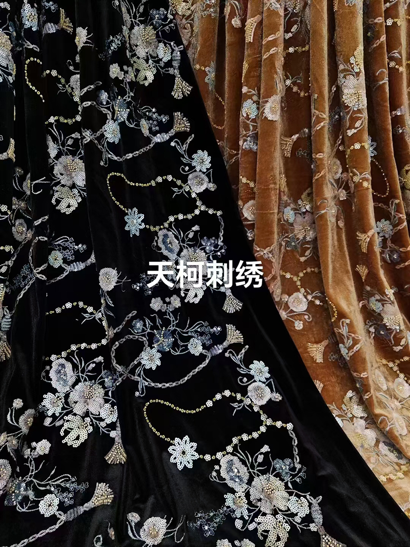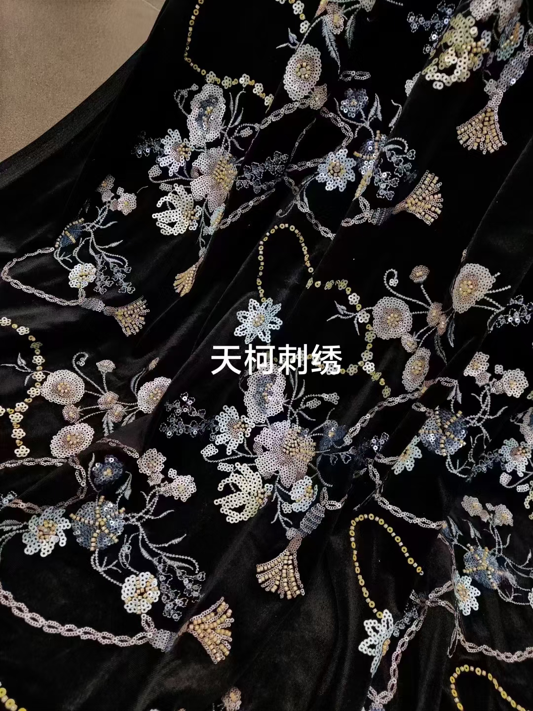 (TMC-E16459) Diamond Necklace Design with Luxiorous Looking on Knitting Stretch Velvet Fabric
