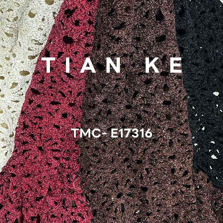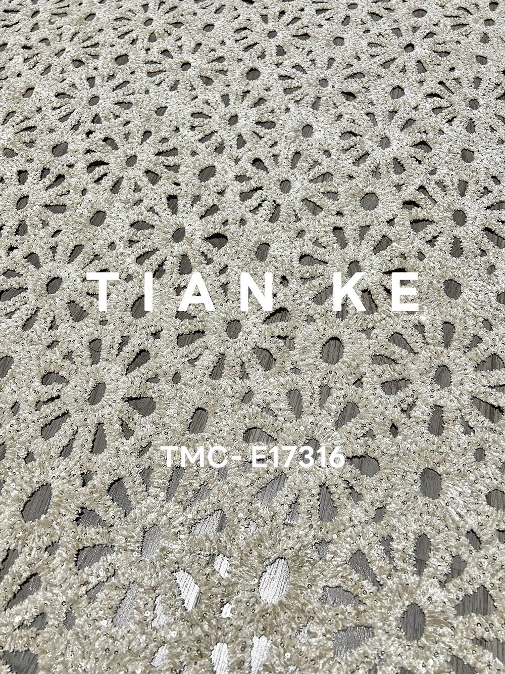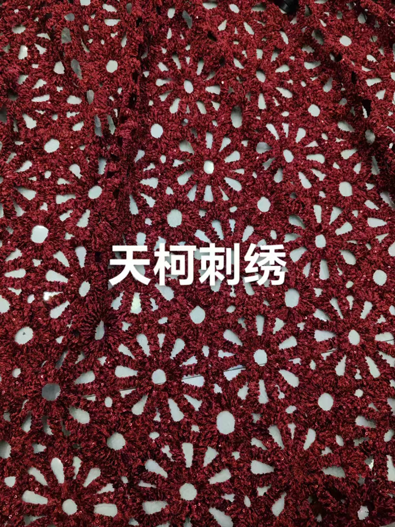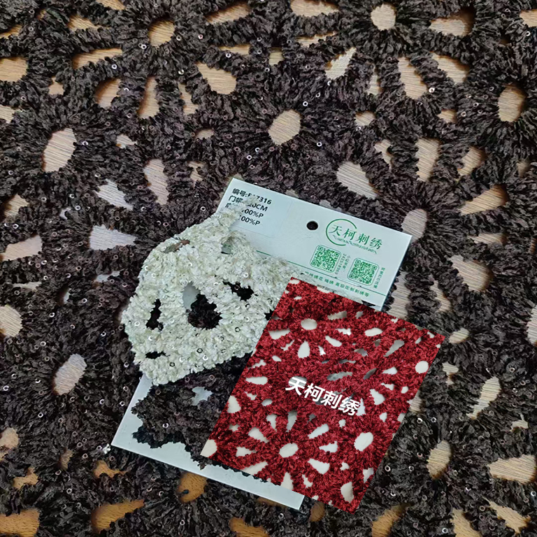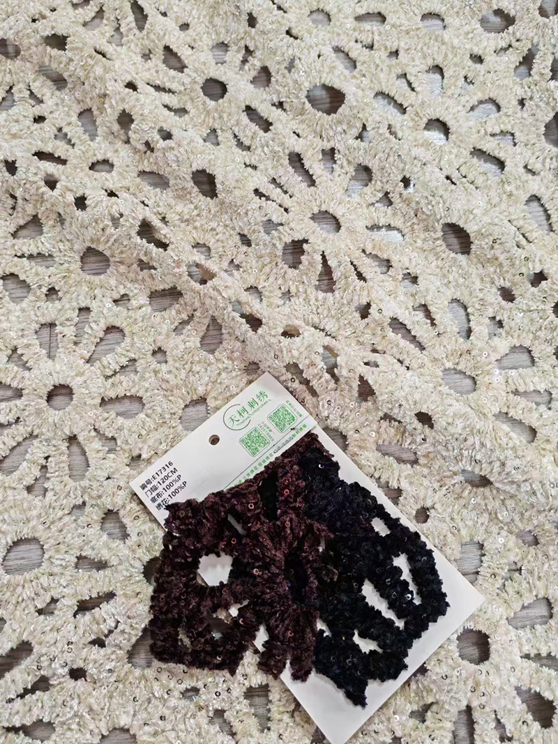 (TMC-E17316) Special Chemical Lace Embroidery with Chenille Yarn Decorated with 3mm Sequins