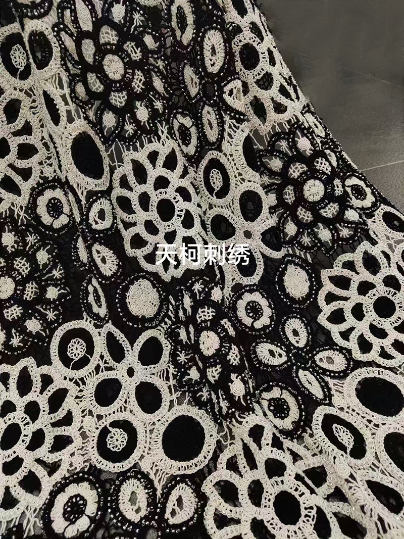 (TMC-E17497) Thick Cotton Cord Thread Combined Black and Natural Color Decorated With Tube Beadings