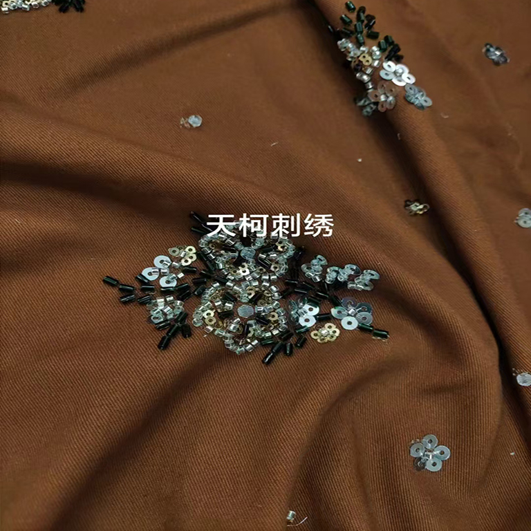 (TMC-E17498-C) Beadings&Sequins Formed Flower Spread out on Fine Twill Cotton Fabric