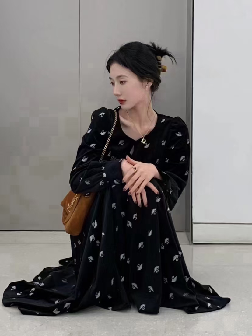 (TMC-E20133) White Swan Swimming on Soft Warm Knitting Vlevet Fabric