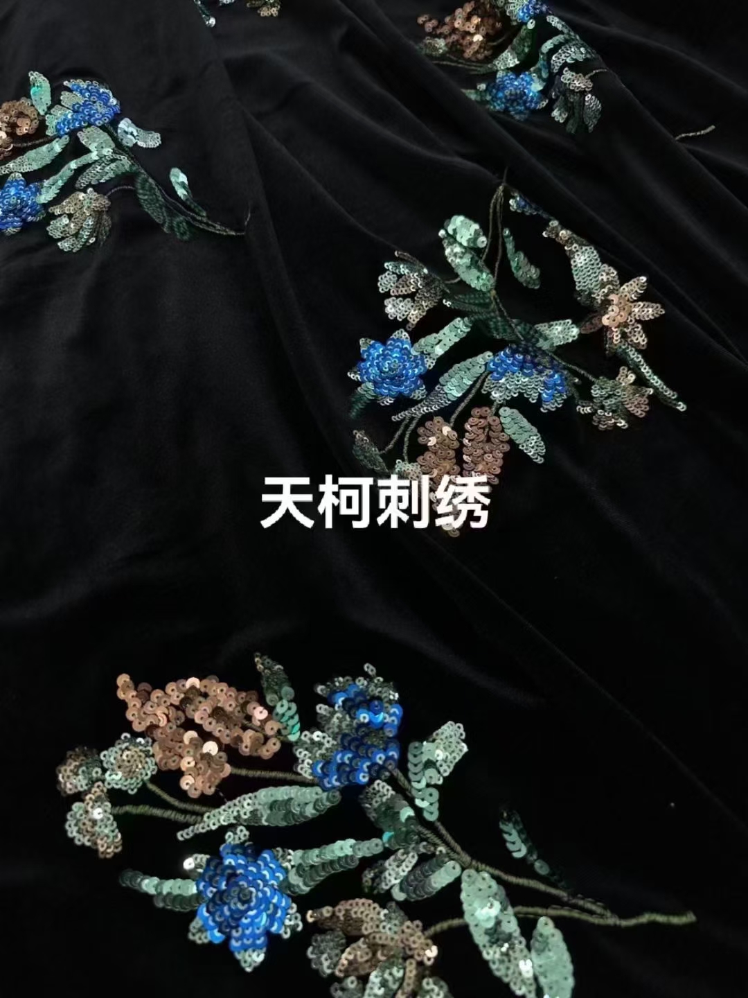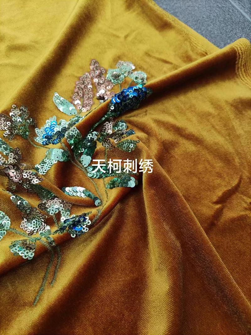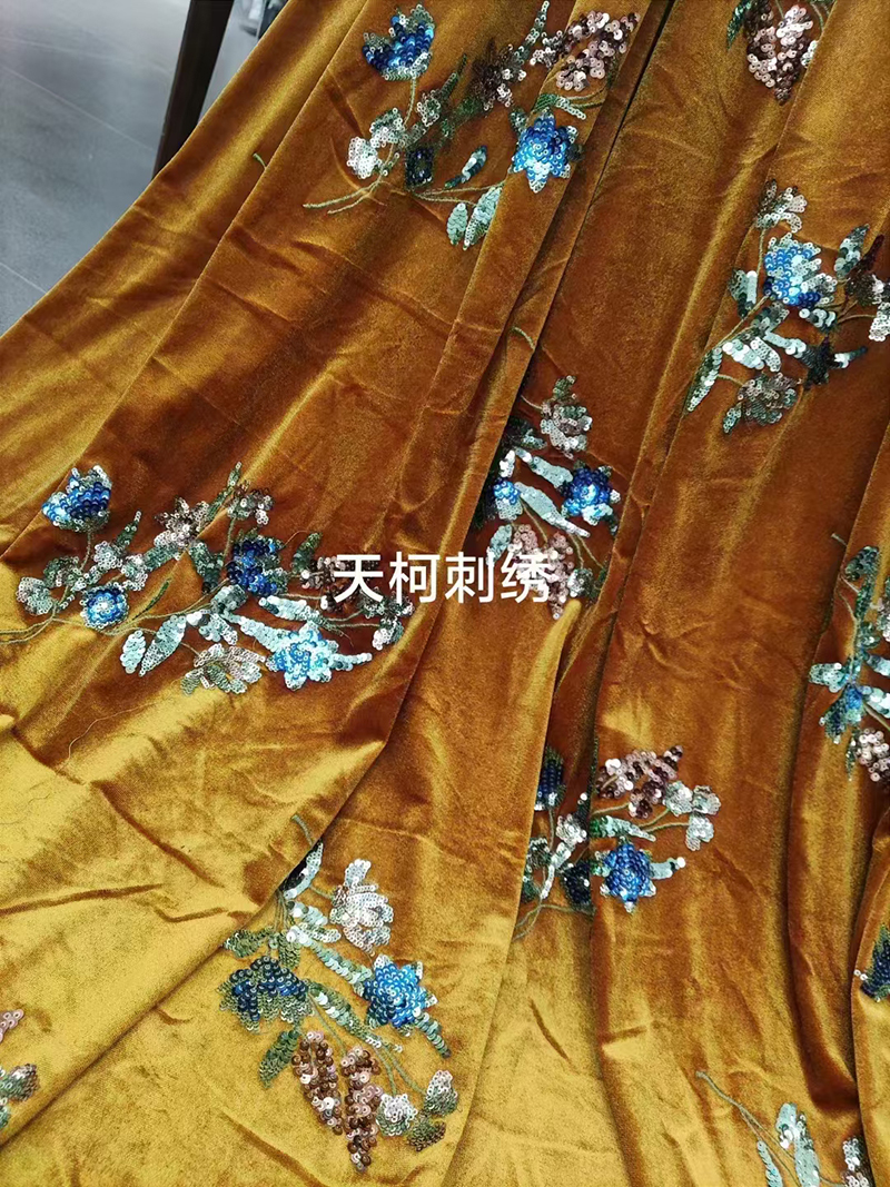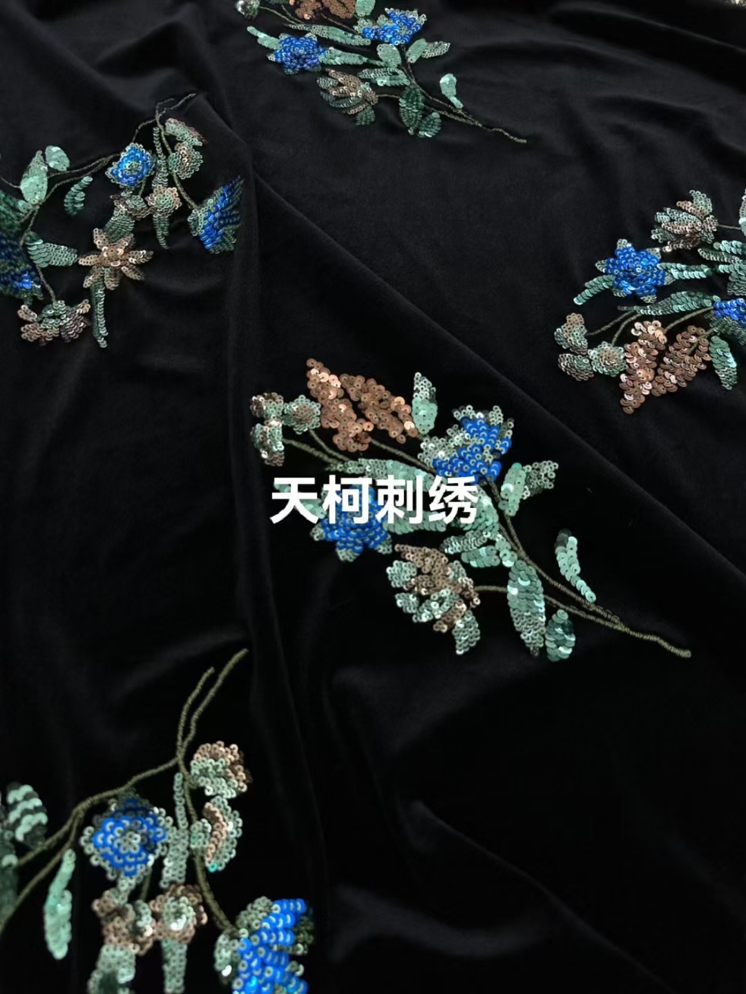 (TMC-E21609-A) Multi Color Sequins Flower Embroidered On Luxiurous Knitting Velvet Fabric