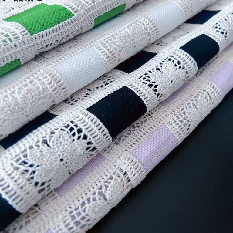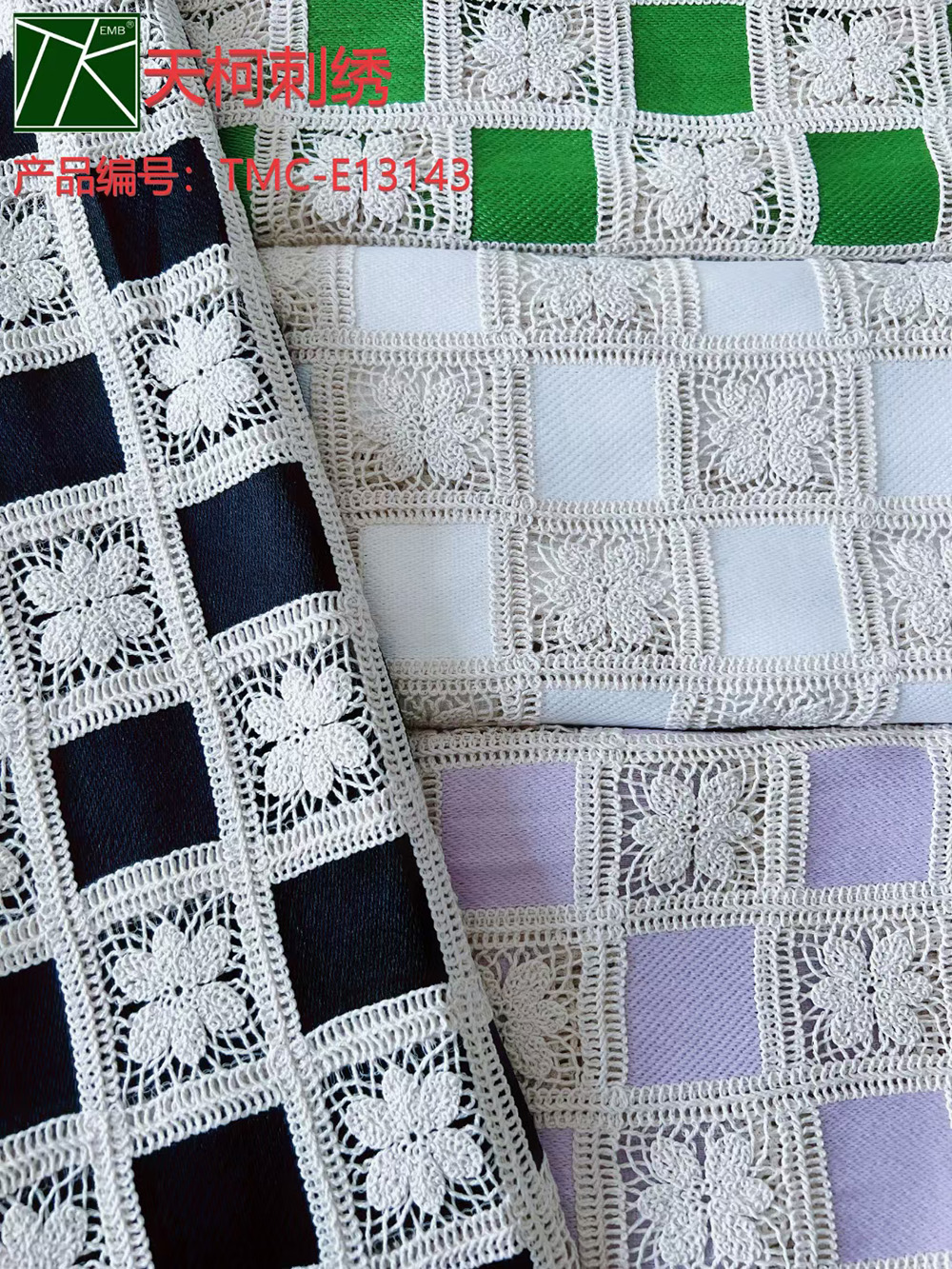 (TMC-E13143) Cotton Cord Thread Combined With Polyester Milky Yarn Chemical Lace Embroidery
