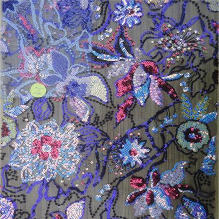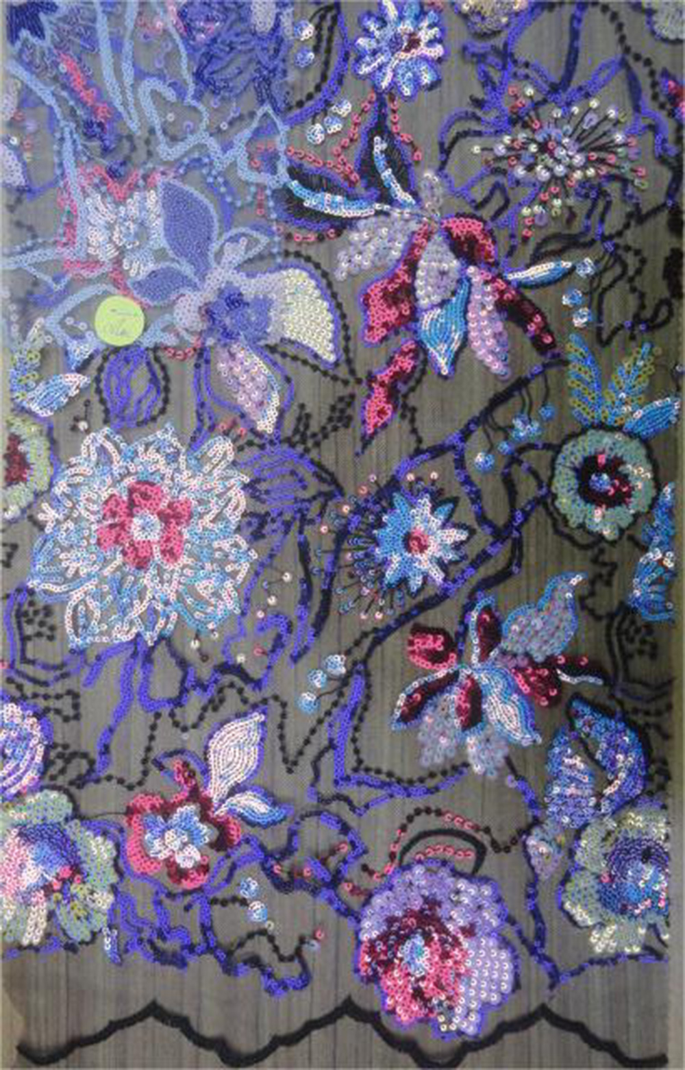 (TMC-E14754) Multi Color Sequins Flower Embroidered On Tulle Mesh with scallop edge