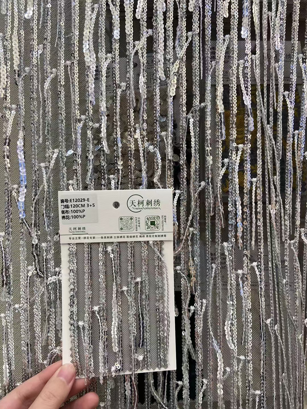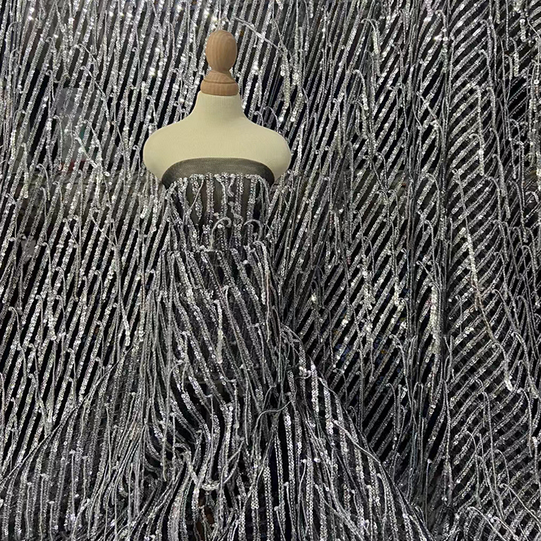 (TMC-E12029-E) 3mm Sequins in 3D FANCY Embroidery Fabric(OUT OF STOCK ,NEED TO MAKE ORDER)