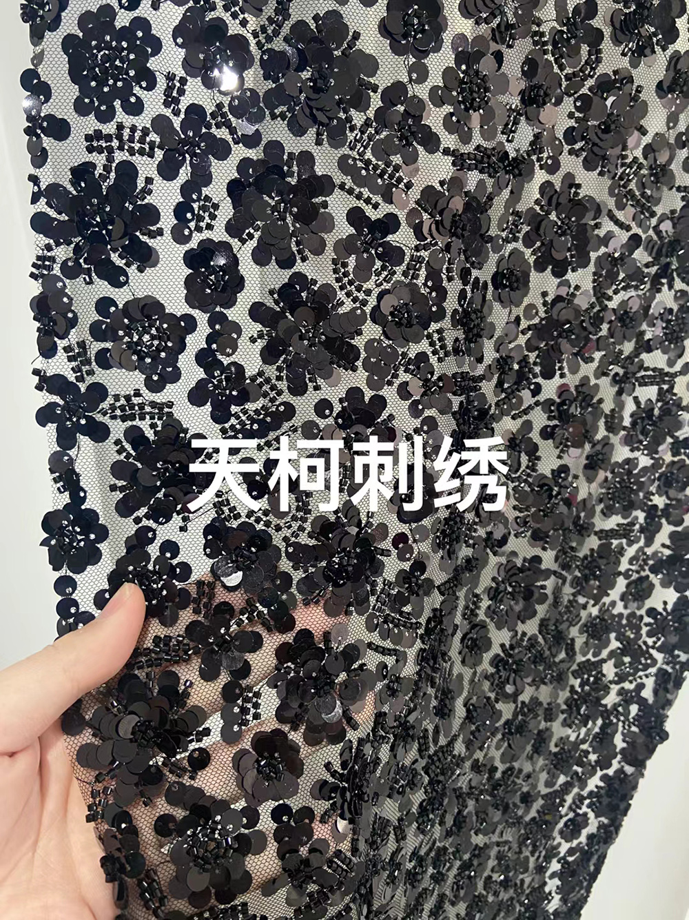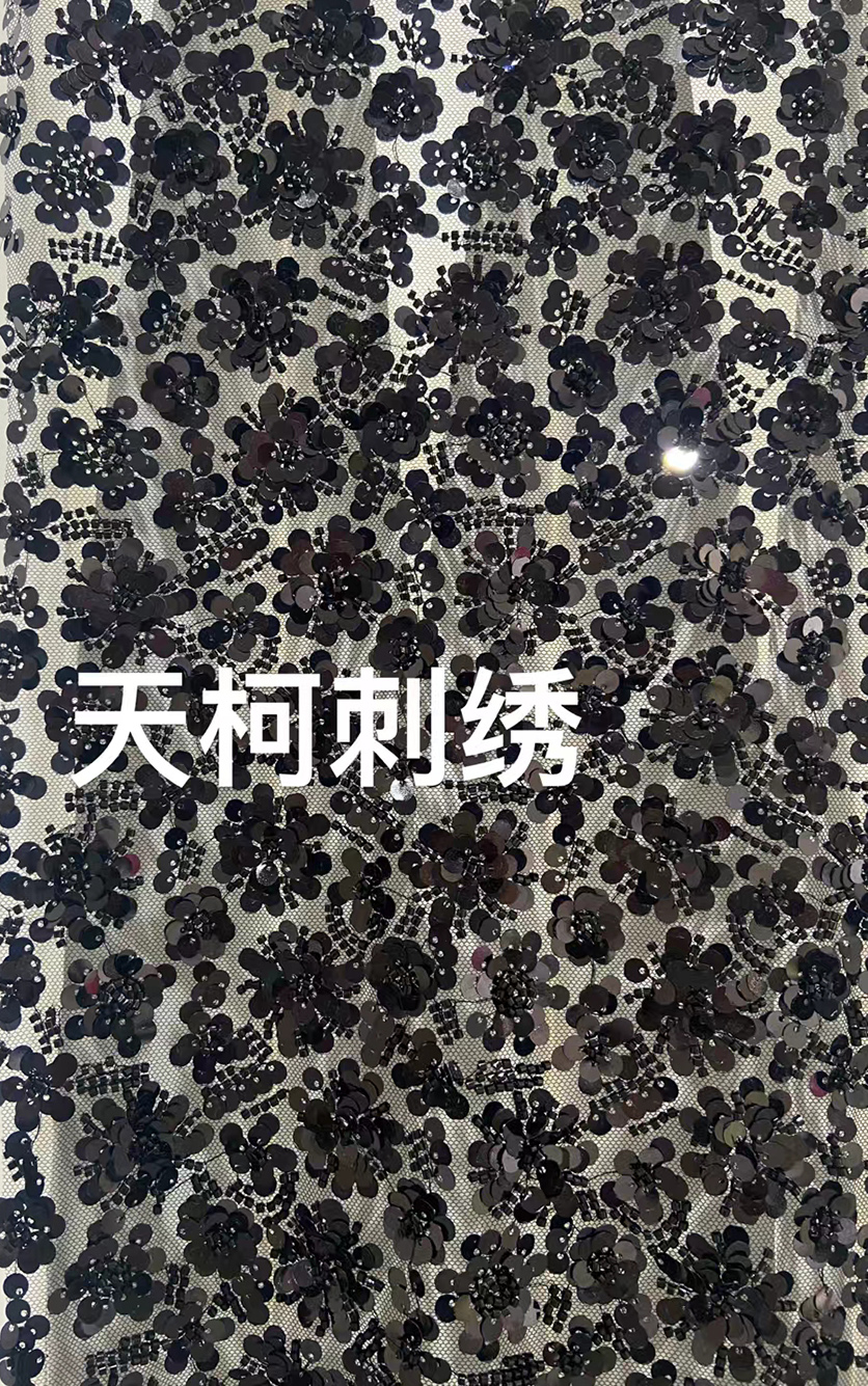 (TMC-E16330)Tube Beads Over Lapped Sequins Formed Flower Desgin Embroidery On Tulle Mesh Fabric