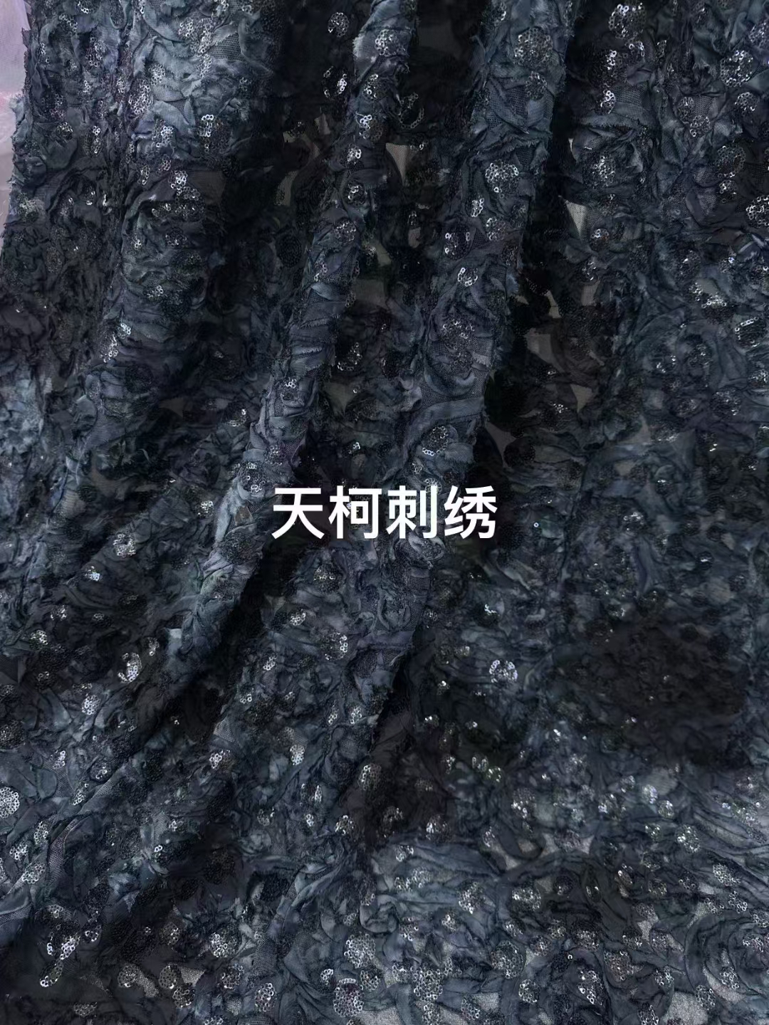(TMC-E1156-A) Ribbon Tape With Sequins Embroidery on Tulle Mesh Base Color Tie Dyed
