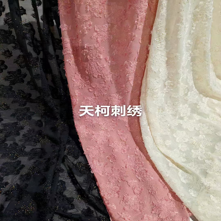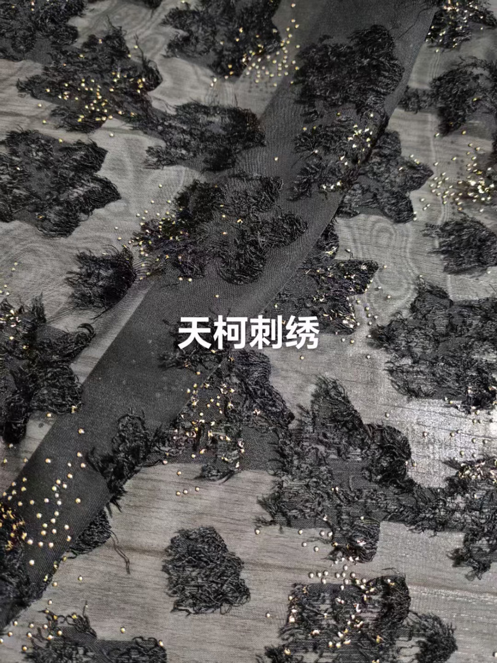 (TMC-E12964) Polyester Chiffon Cut-Out Jacquard Fabric with Dew Drop(Hot Fix)Process