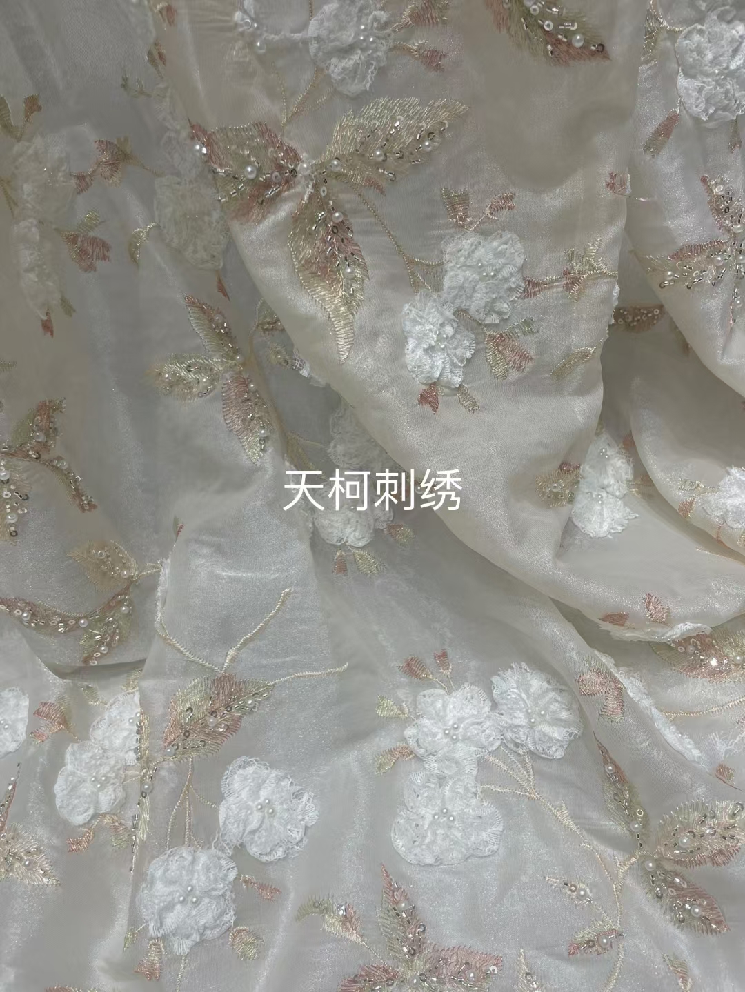 (TMC-E17826) Elegant Embroidery Ribbon Tape ,Sequins,Pears,Tube Beads on Poly Organza Fabric