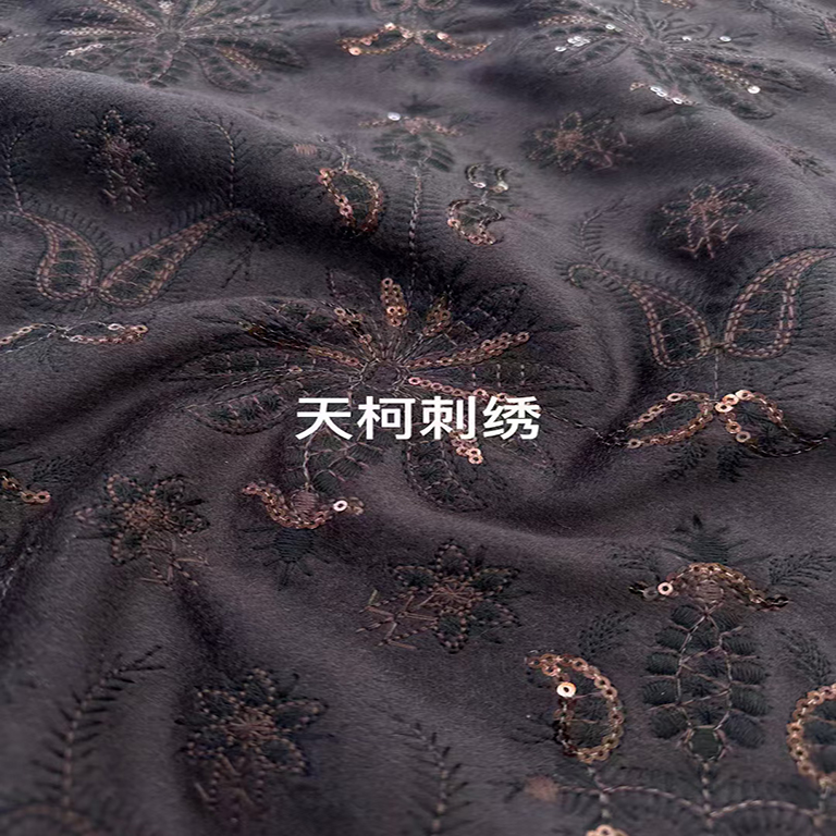 (TMC-E20295-D) Sequins Embroidery on Poly Rayon Brushed Fabric