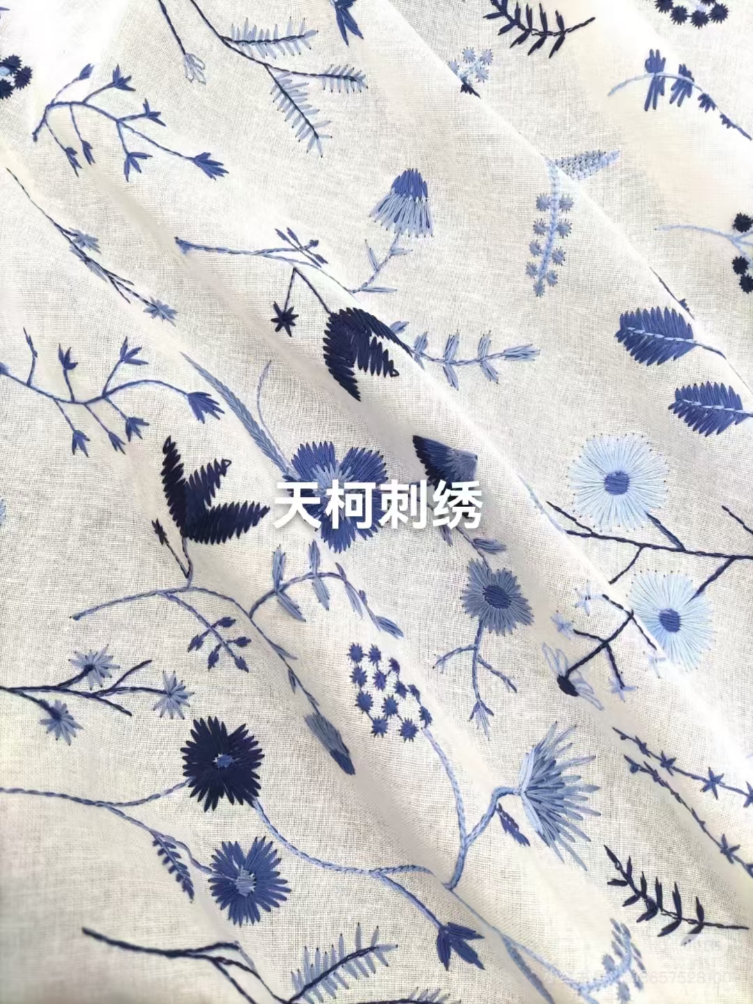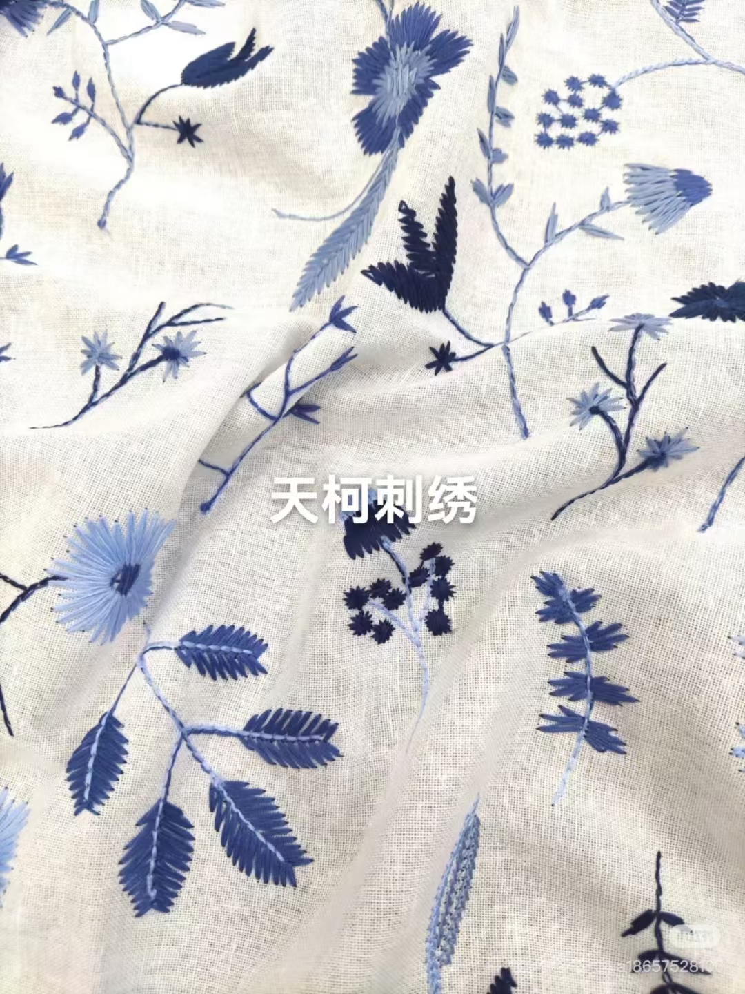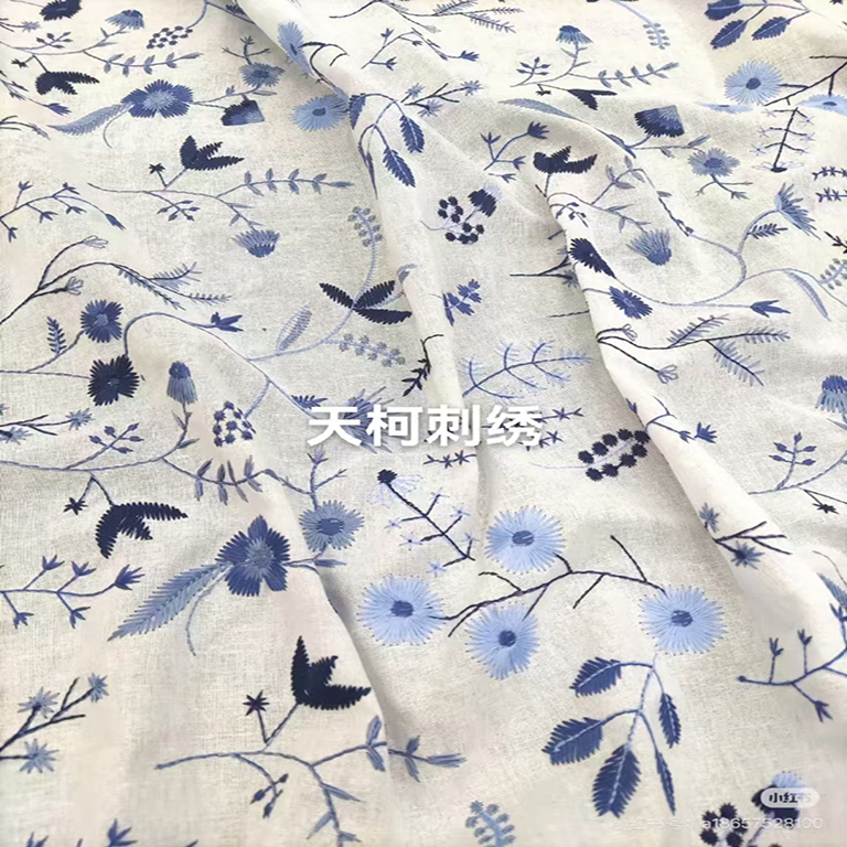 (TMC-E21013) Poly Milk Yarn Flower Design Embroidery on Cotton Linen Base Fabric