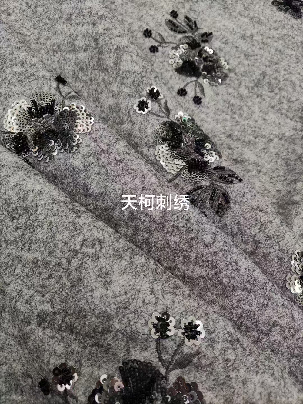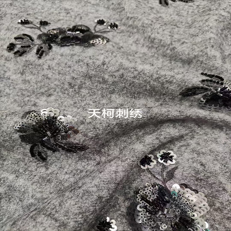 (TMC-E21913) Sequins&Tube Beads Flower Embroidery on Poly Wool Fabric For Winter