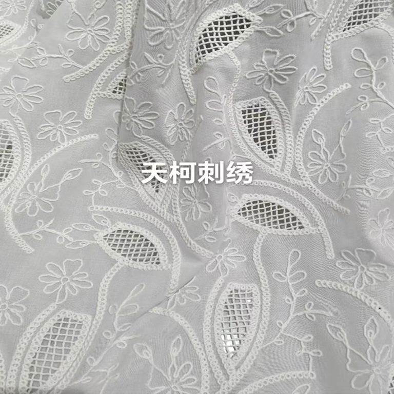 (TMC-E16615) Cotton Voile Base Fabric Embroidered with Cotton Cord Yarn Laser Cut