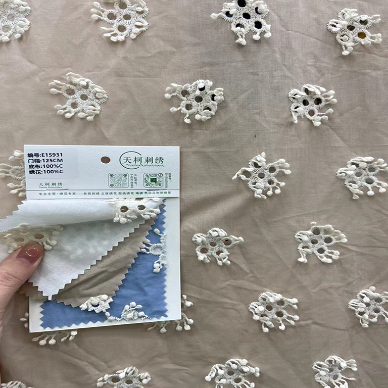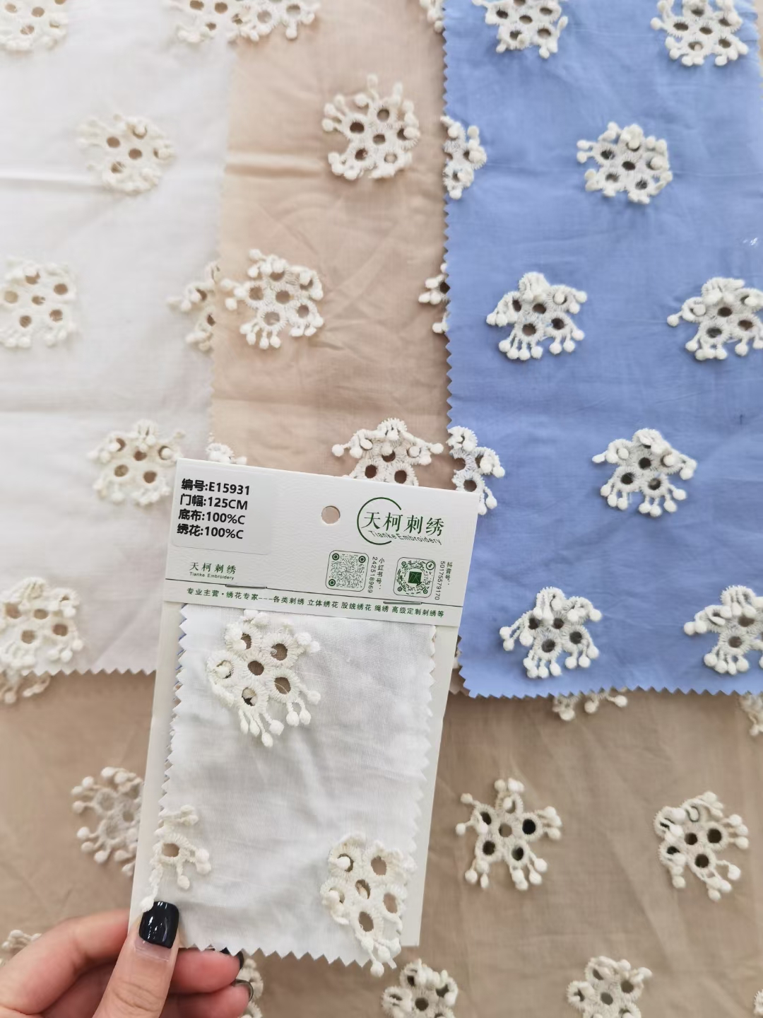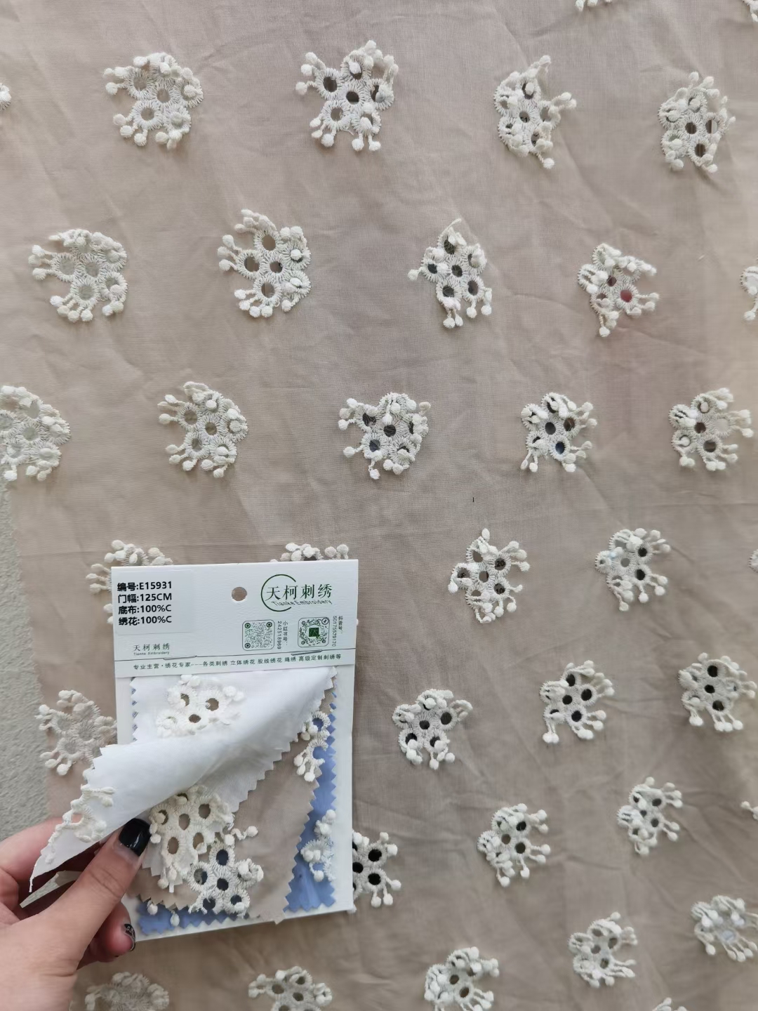 (TMC-E15931) Cotton Eyelet Embroidery with 3D Fringe Dot