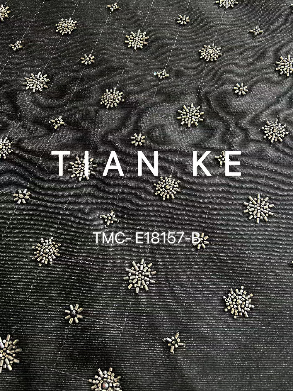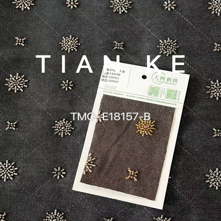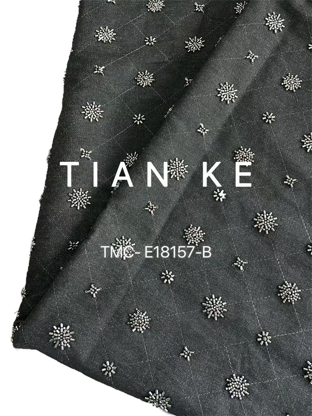 (TMC-E18157-B) Tube Beading Embroidery of SunFlower Design on Cotton Denim Fabric