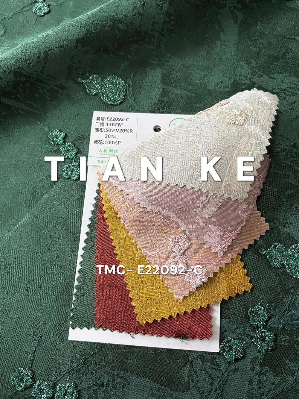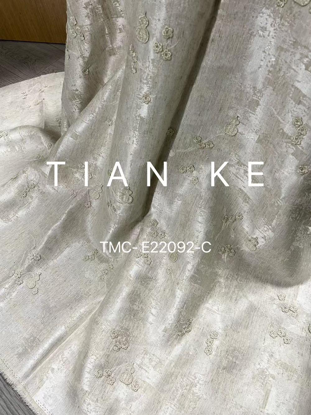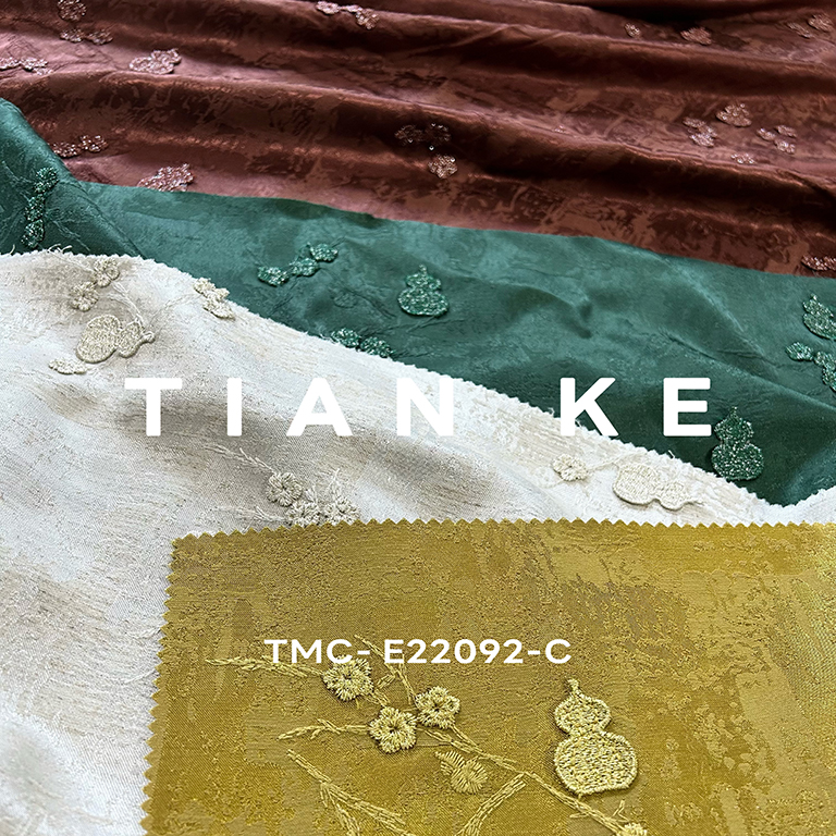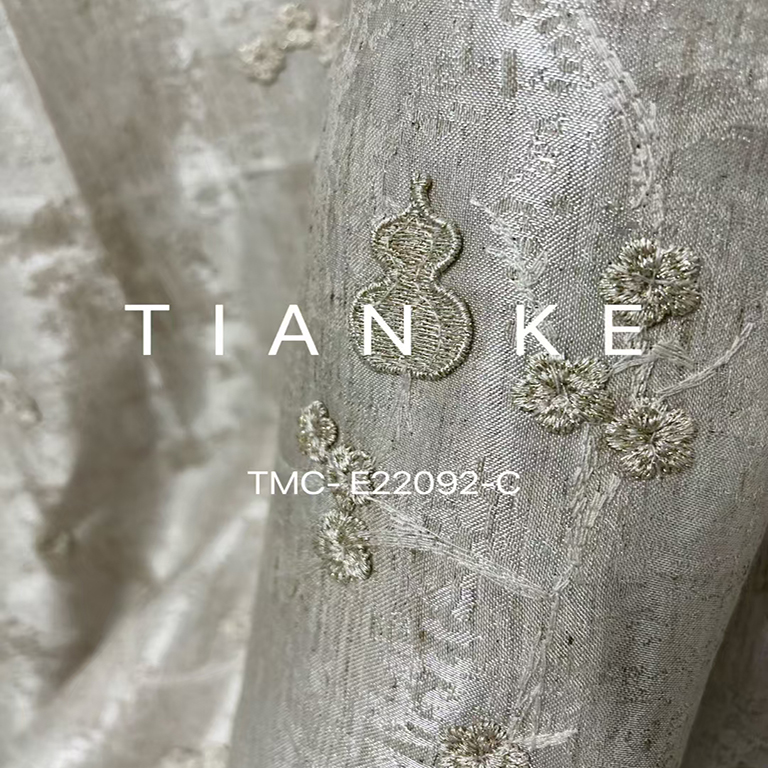 (TMC-E22092-C) 3D Gourd Embroidered on Tencel Linen Blended Fabric