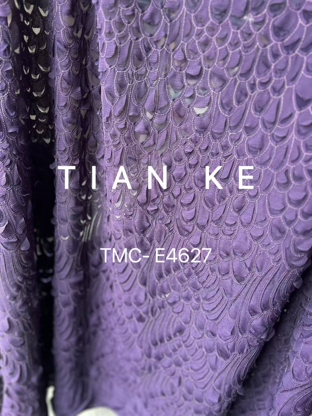 (TMC-E4627) Laser Cut Peacock Pattern On Polyester Chiffon Yoryo Base Fabric