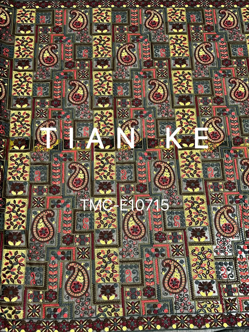 (TMC-E10715) Heavy Stitching Paisley Inserted in Geometrial Puzzled Pattern