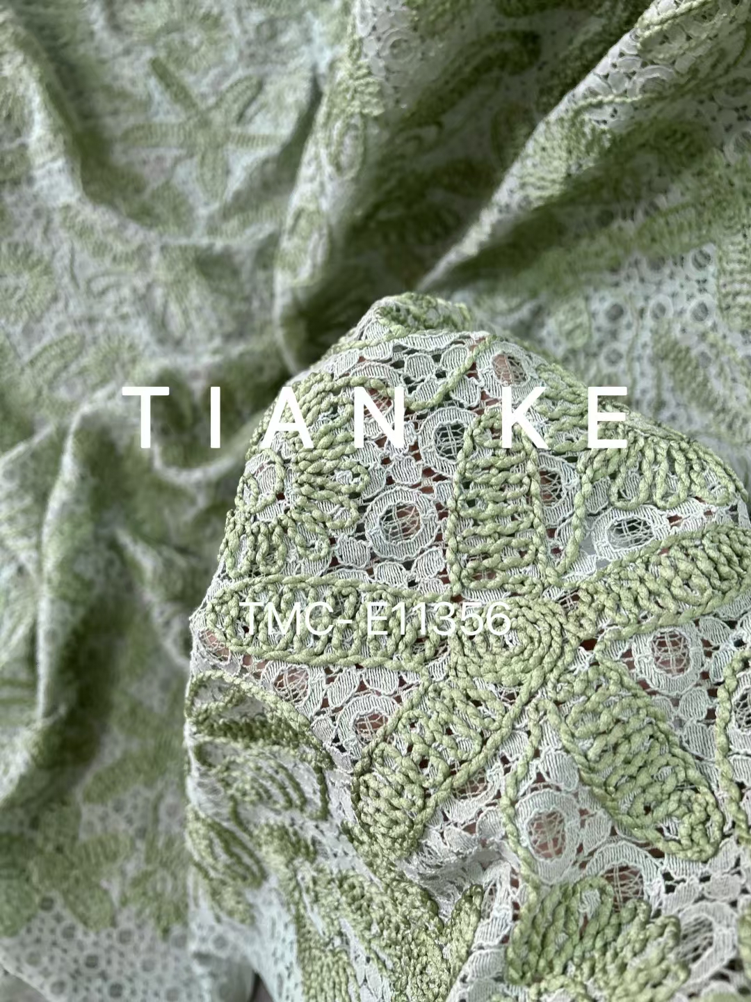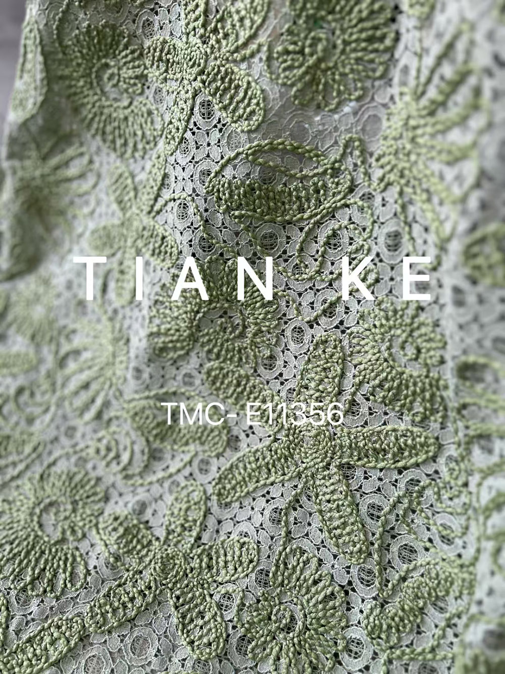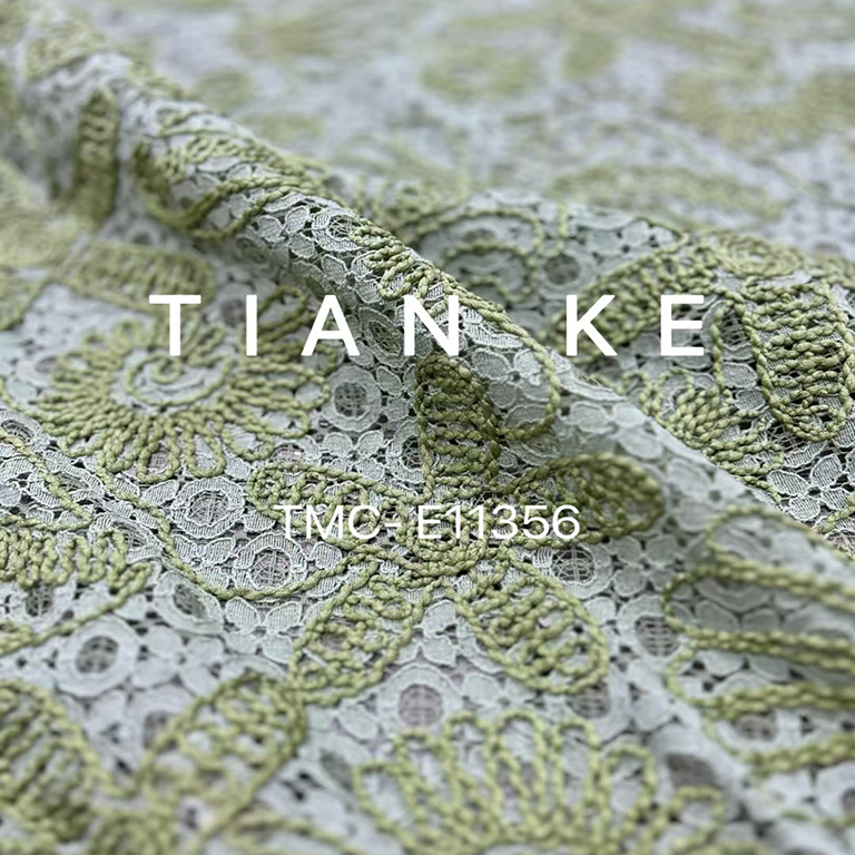 (TMC-E11356)Poly Rope Thread Embroidered on Nylon Cotton Blended Lace Fabric