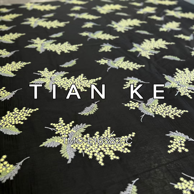 (TMC-E16382-C) Special Dots Leaves All Over Emboridery on Tencel Poly Blended Fabric