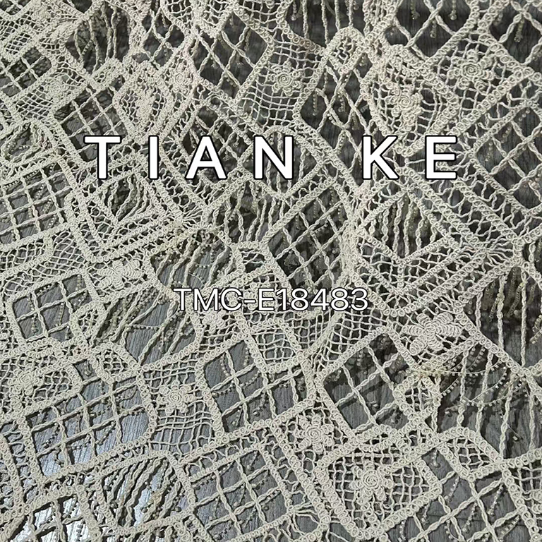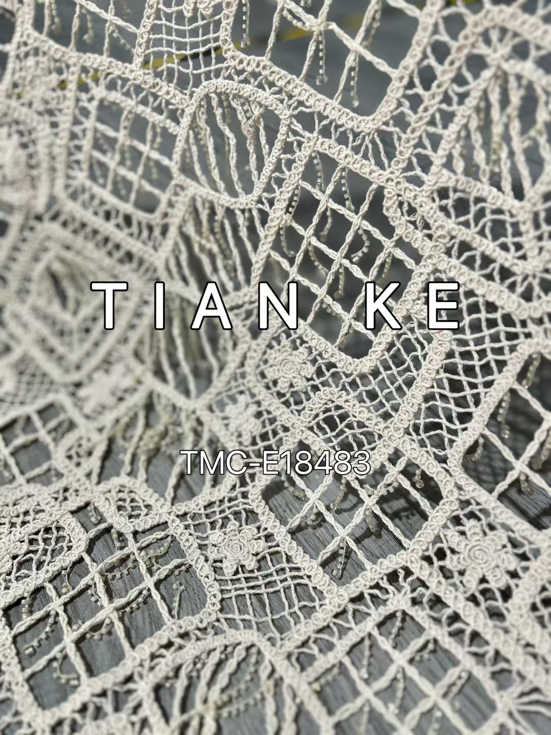 (TMC-E18483) Cotton Cord Guipure With 3D Fringes Decorated with Beadings